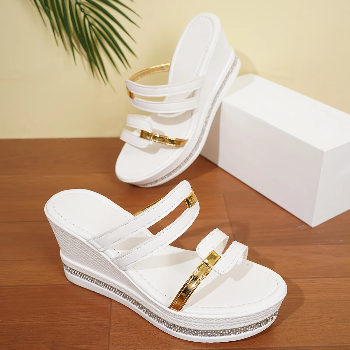 Women’s Wedges Sandals Luxury Platform Slippers Sexy Open Toe Women Shoes Shiny High Heels Women Beach Shoes Sandalias De Mujer