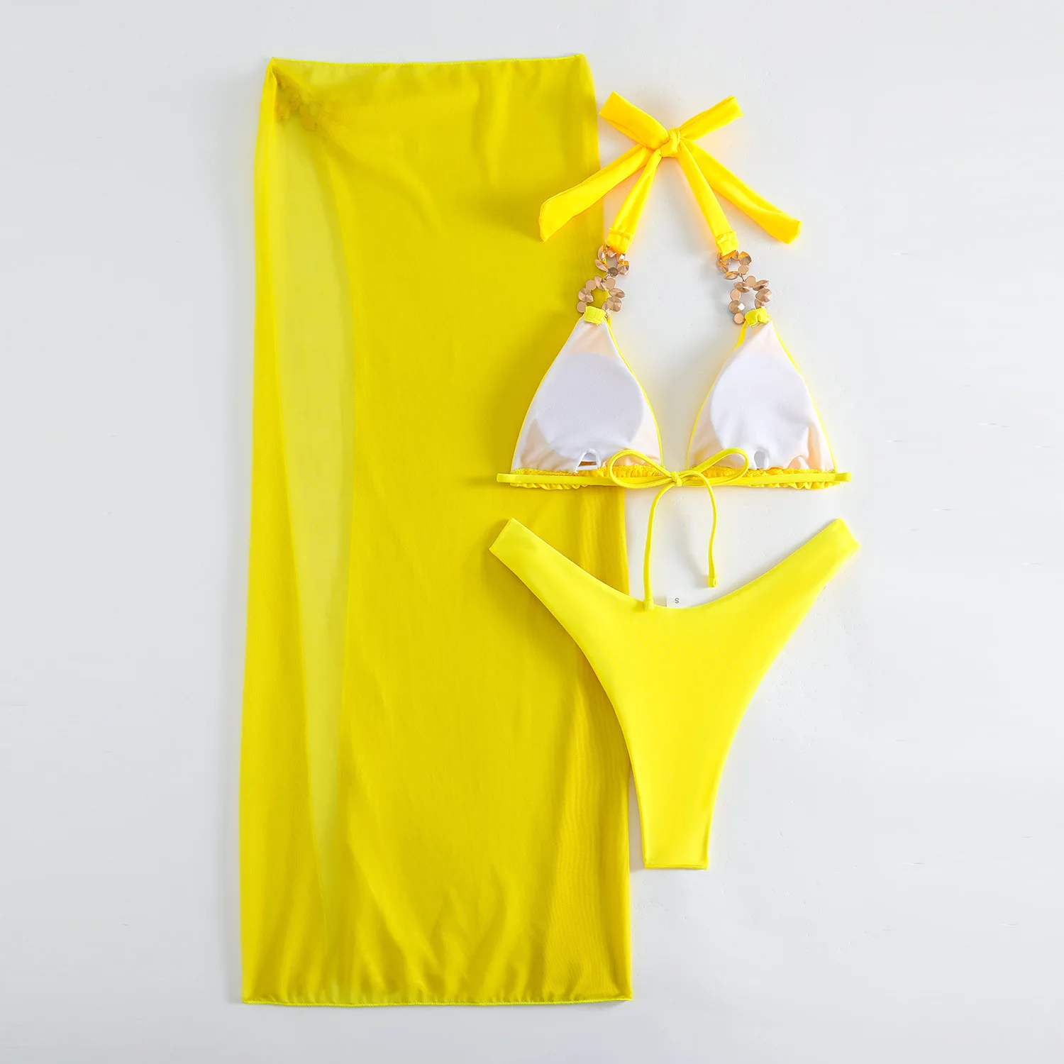 Summer Yellow Sexy Rhinestones Bikinis 2024 Women Swimwear Female Swimsuit Swimming Bathing Suits Brazilian Bikini Set Beachwear Bather