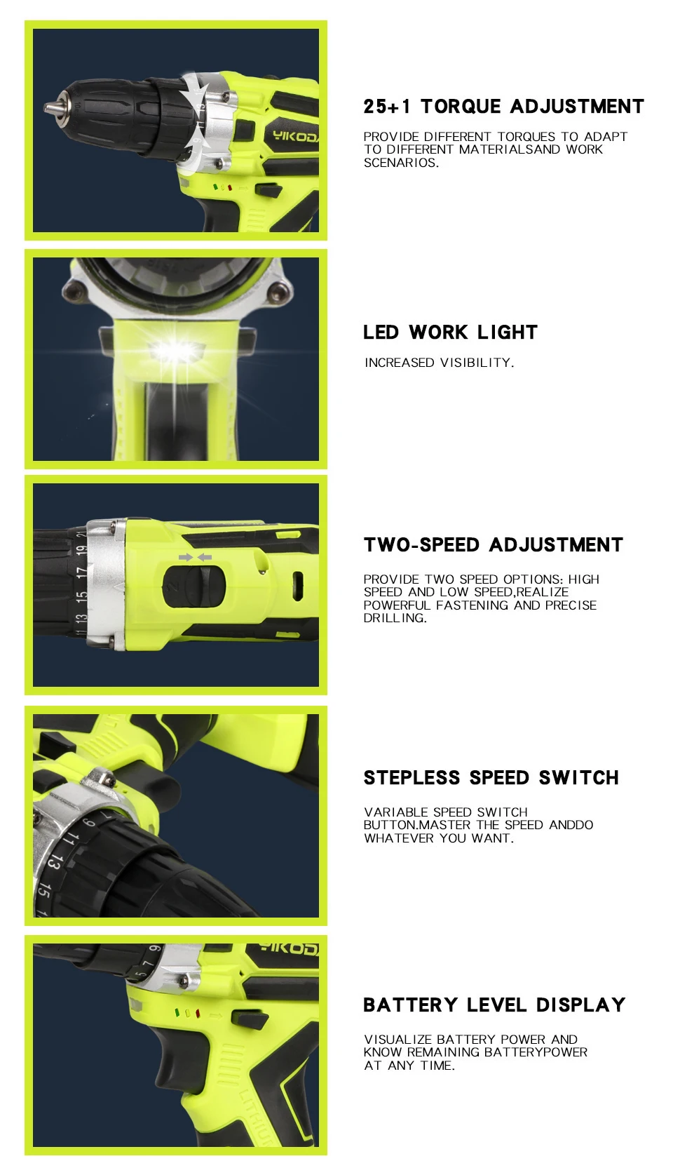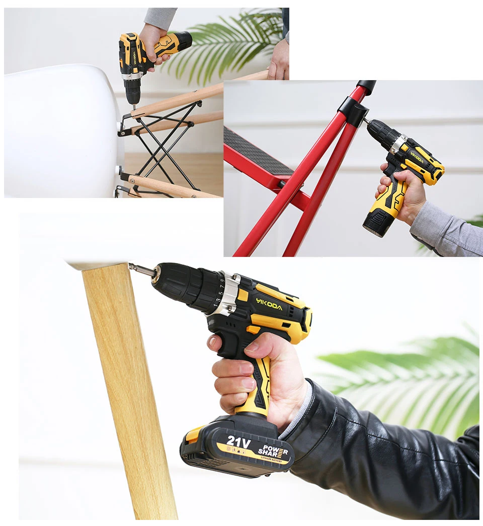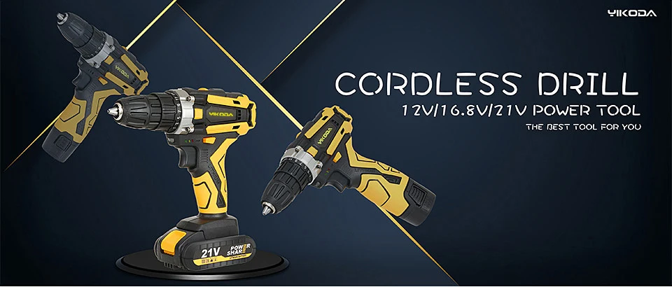 YIKODA 12V 16.8V 21V Electric Screwdriver Cordless Drill Rechargeable Lithium Battery Mini Wireless Power Driver Tools