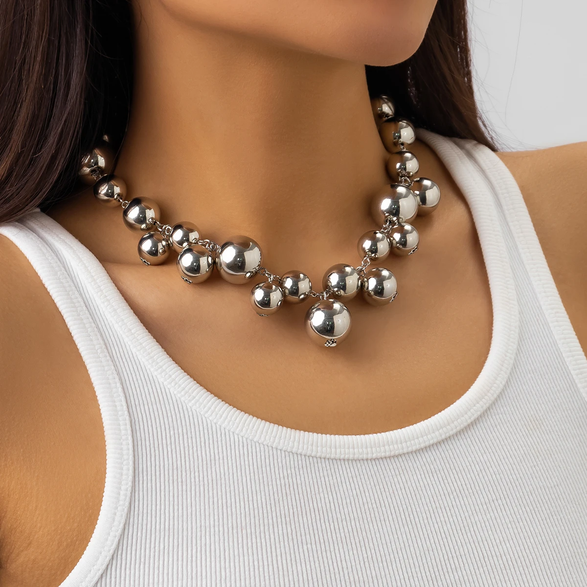 Exaggerated Acrylic CCB Big Ball Bead Chain Necklace for Women Wed Vintage Chunky Clavicle Choker Grunge Jewelry Steampunk Men