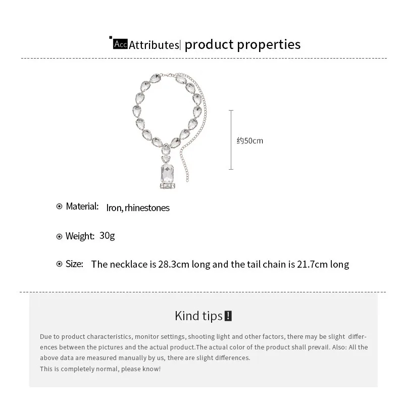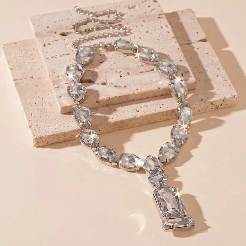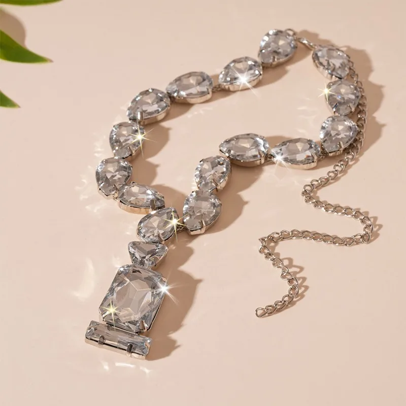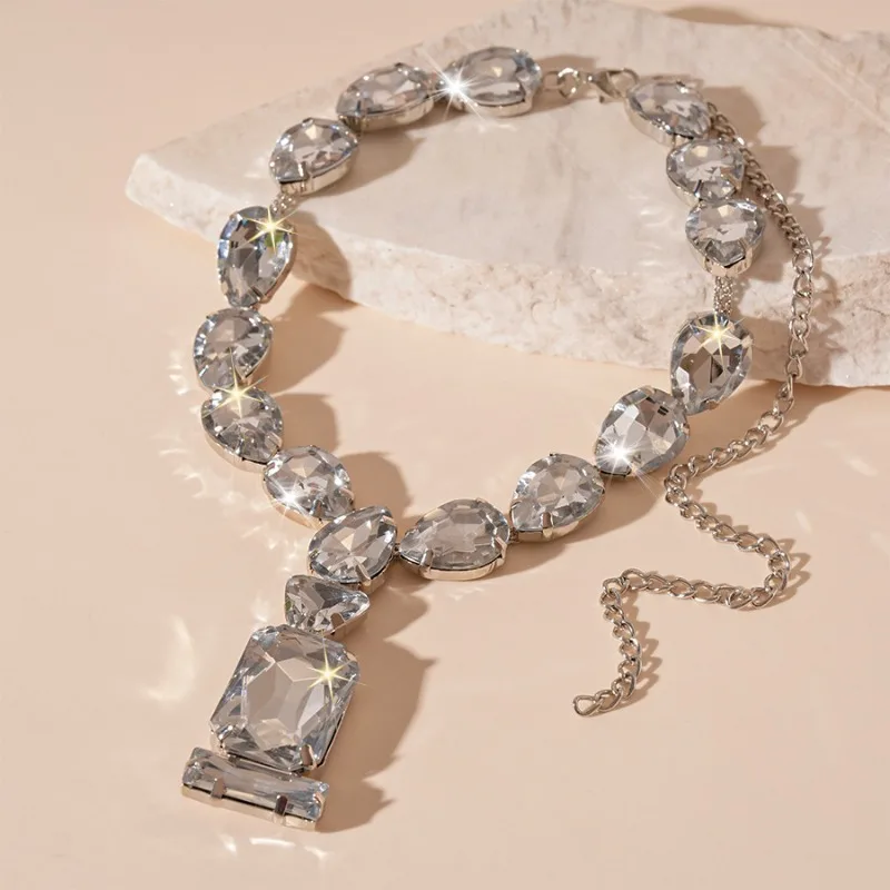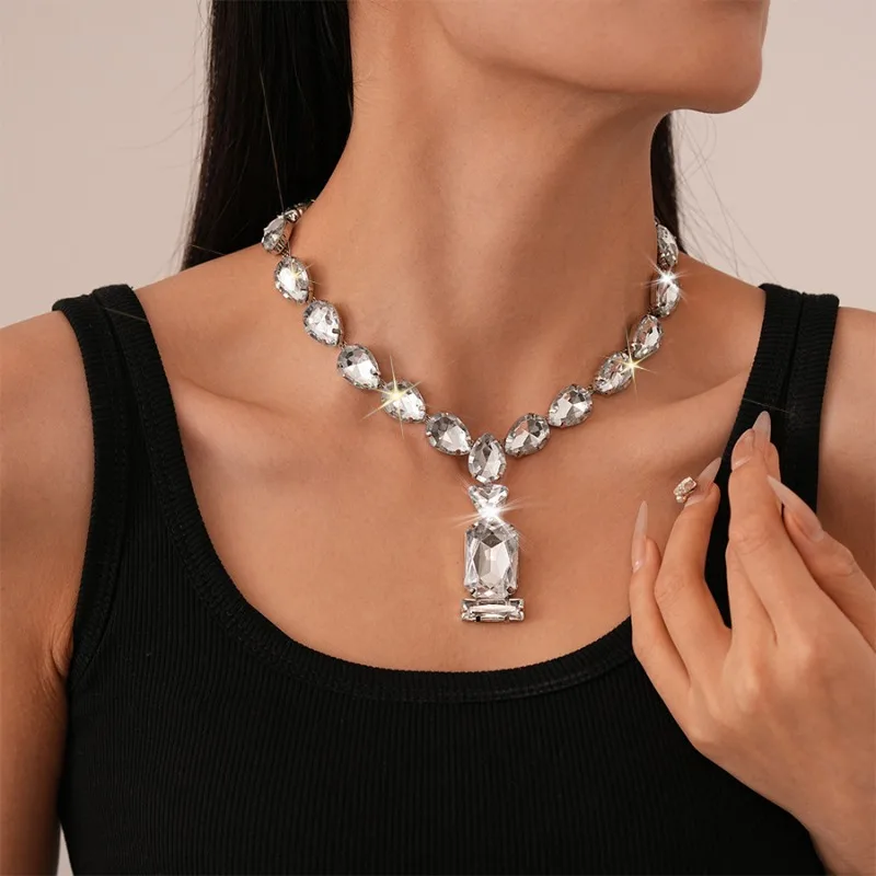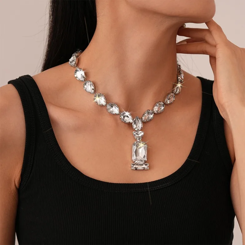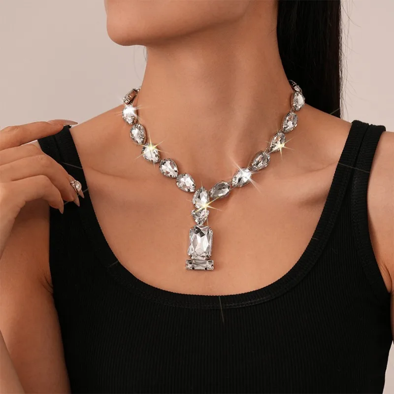Exaggerated Rhinestone Water Drop Square Necklaces European and American Fashion Geometric Necklace Wedding Bridal Jewelry