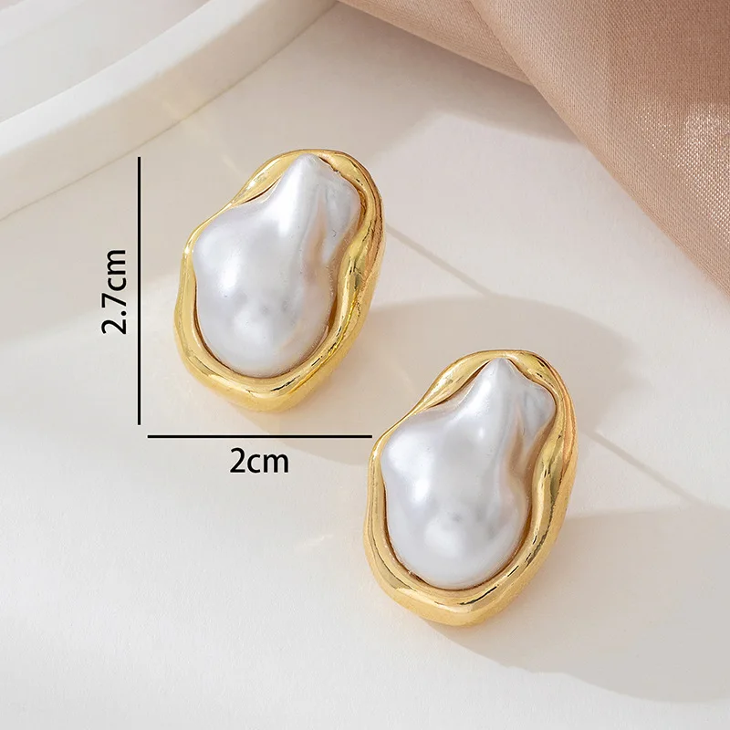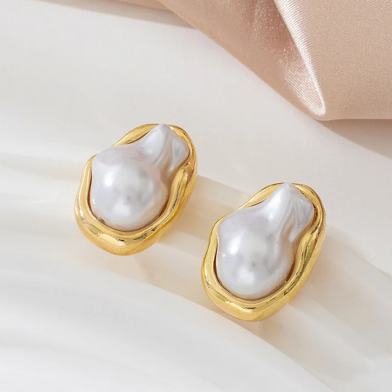 Exquisite Irregular Baroque Pearl Stud Earrings for Women Girls Vintage Gold Color Metal Edged Earrings Jewelry Accessories
