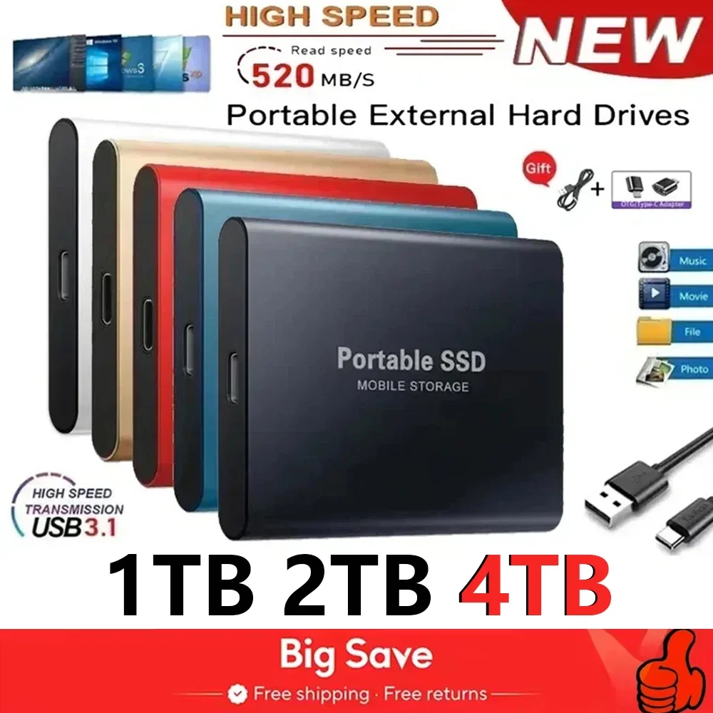 Genuine Portable SSD 1TB High Speed External Hard Drive 2TB/4TB USB 3.2 Hard Disk 16TB Mass Solid State Drive for Laptop/PC/MAC