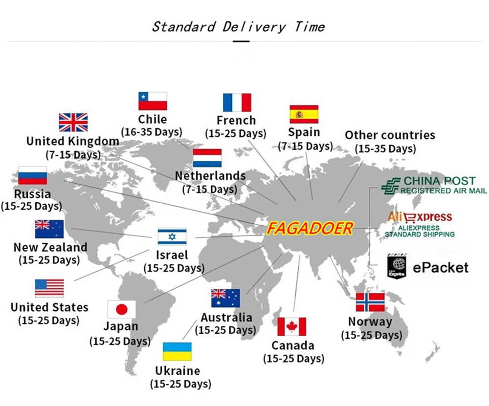 Packages from our warehouse in China will be shipped by ePacket or EMS depending on the weight and size of the product. Packages shipped from our US warehouse are shipped through USPS.