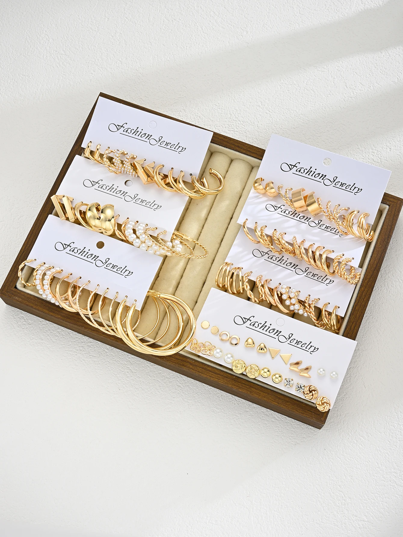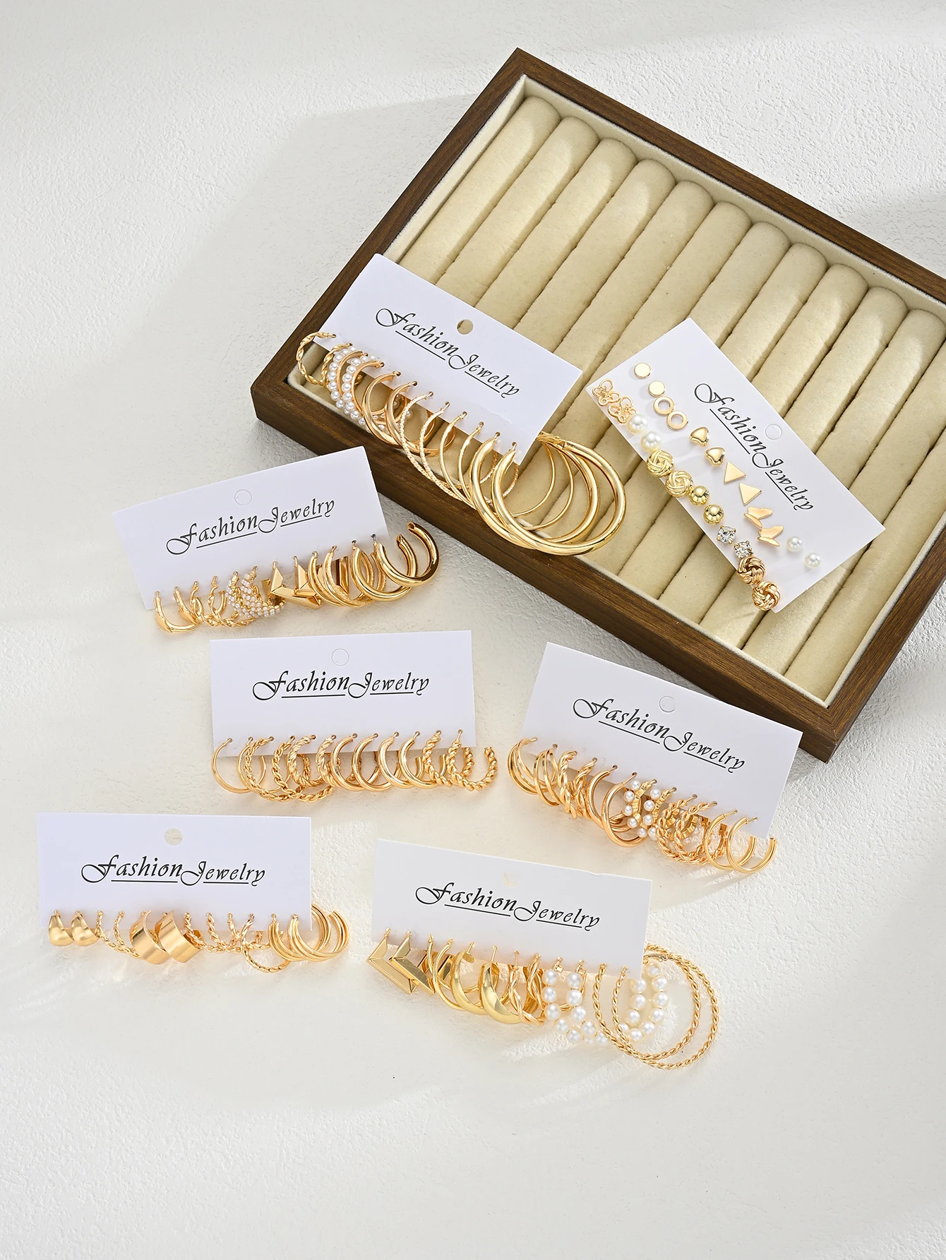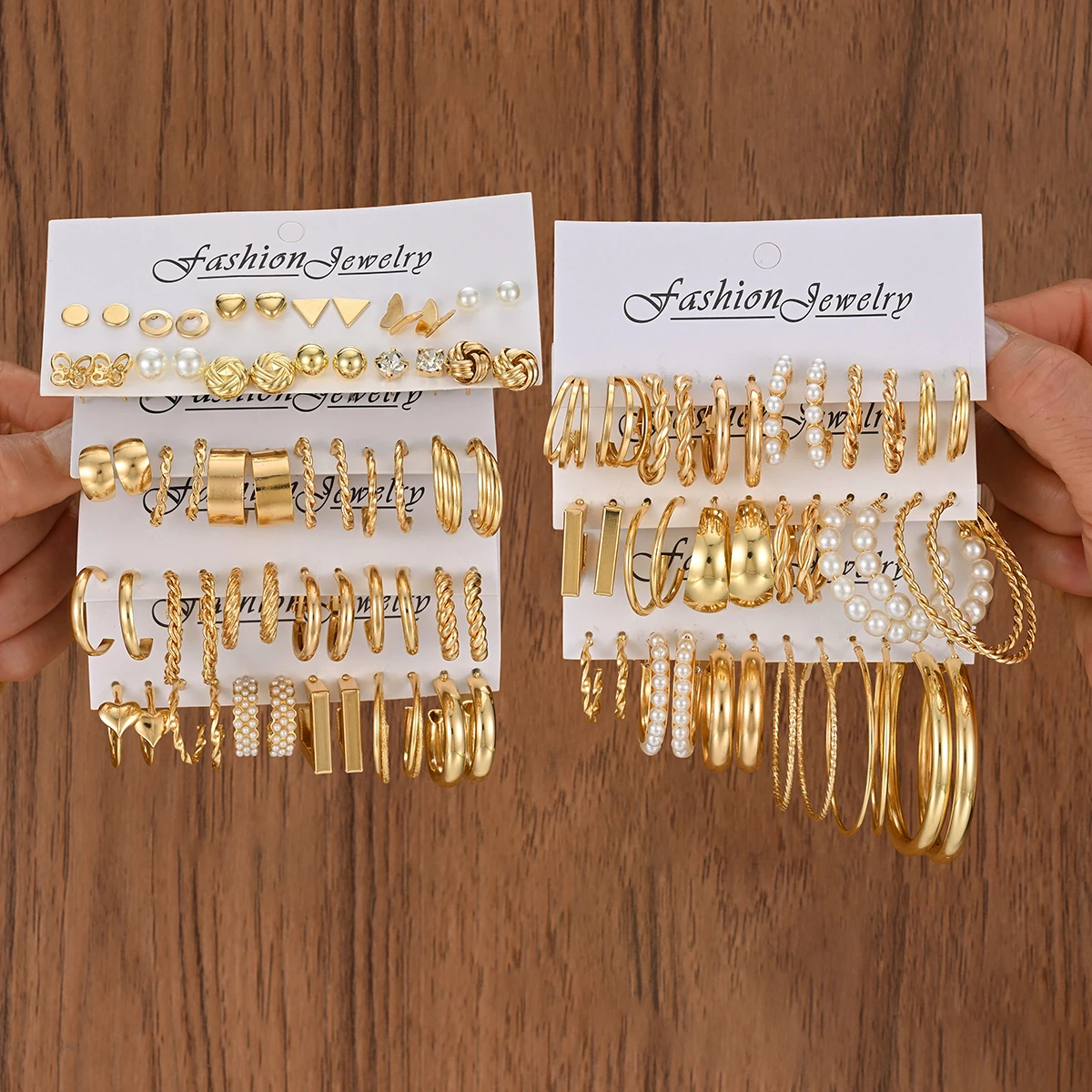 Fashion Geometric Gold Color Earring Set for Women Vintage Multi-Element Pearl Twist C-shaped Hoop Earrings Daily Party Jewelry