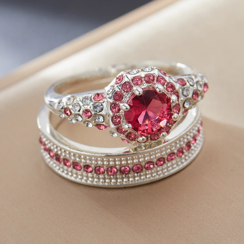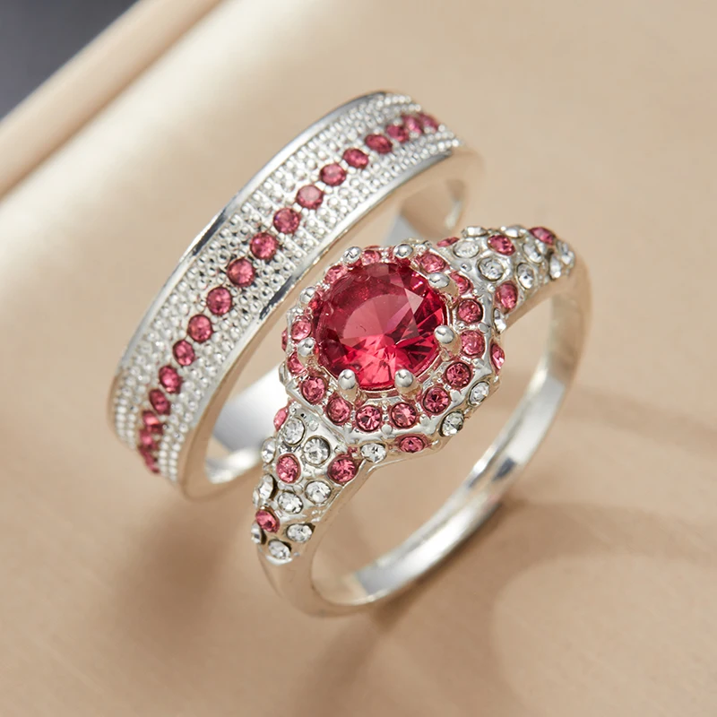 Fashion Luxury Princess Ring Set Cubic Zircon Bridal Marriage Elegant Rings for Women Couple Wedding Jewelry Accessories