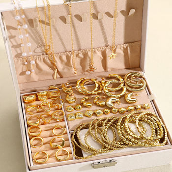 Fashion Luxury Women Gold Watch Bracelet Necklace 6Pcs Set Ladies Diamond Quartz Wristwatch Valentine’s Day Mother’s Day Gift