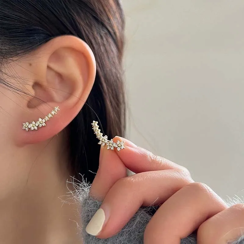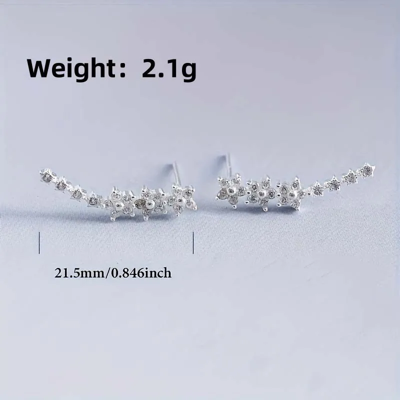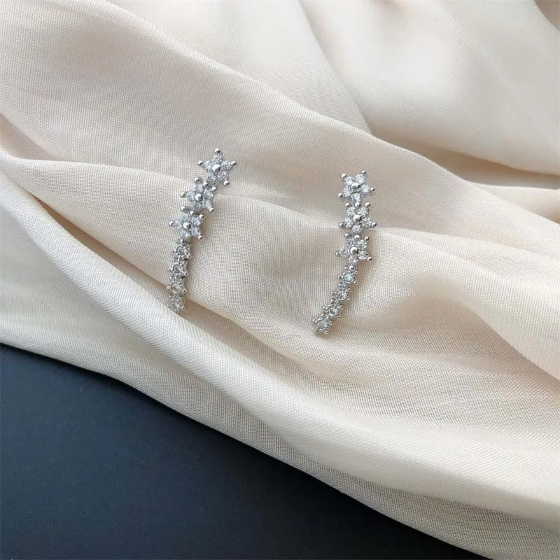 Fashion Silver Color Zircon Flower Star Stud Earrings For Women Simple Metal Piercing Climbing Earrings Jewelry Accessories