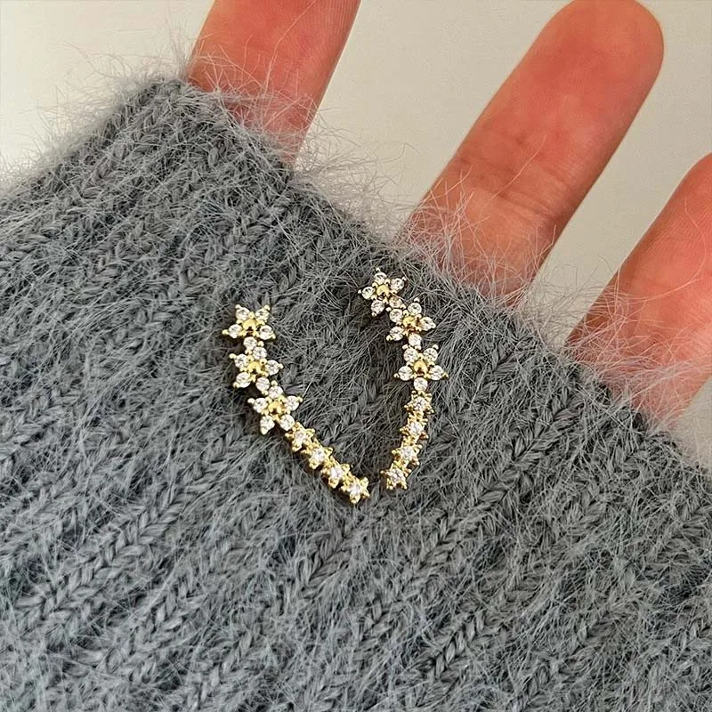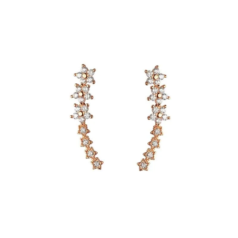 Fashion Silver Color Zircon Flower Star Stud Earrings For Women Simple Metal Piercing Climbing Earrings Jewelry Accessories