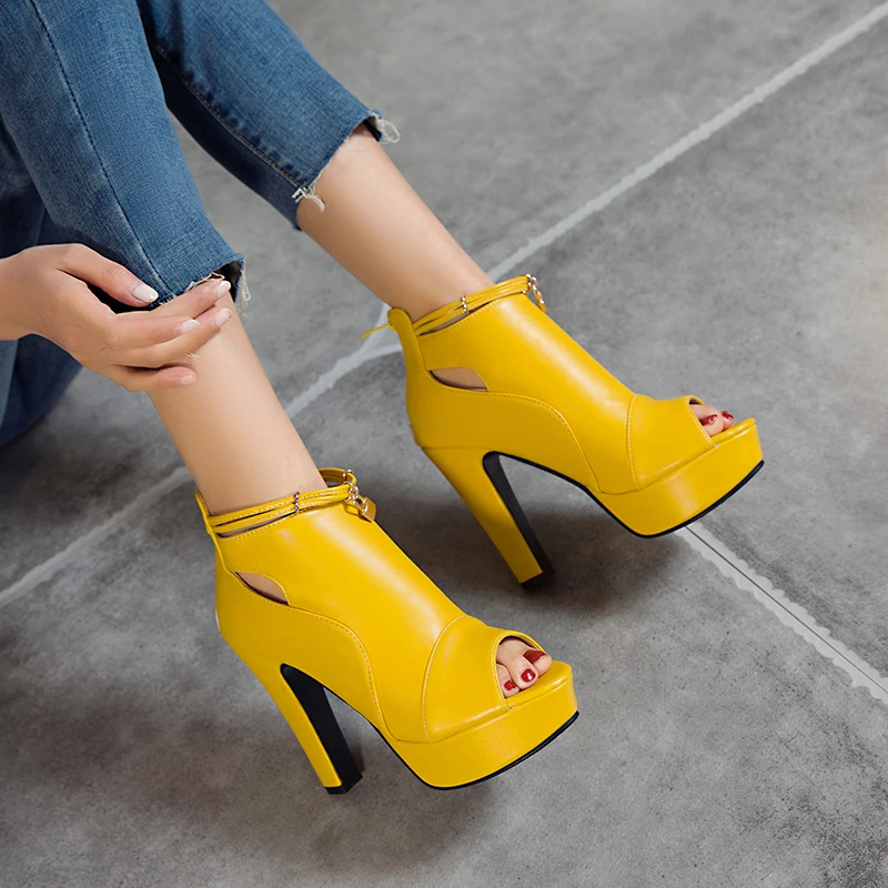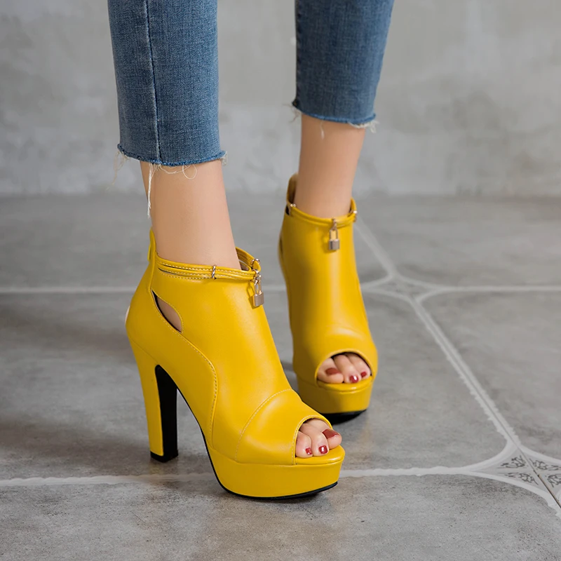 Fashion Summer Shoes For Women Sandals High Heels Platform Peep Toe Ankle Boots Yellow White Blue Party Shoes Female Large Size