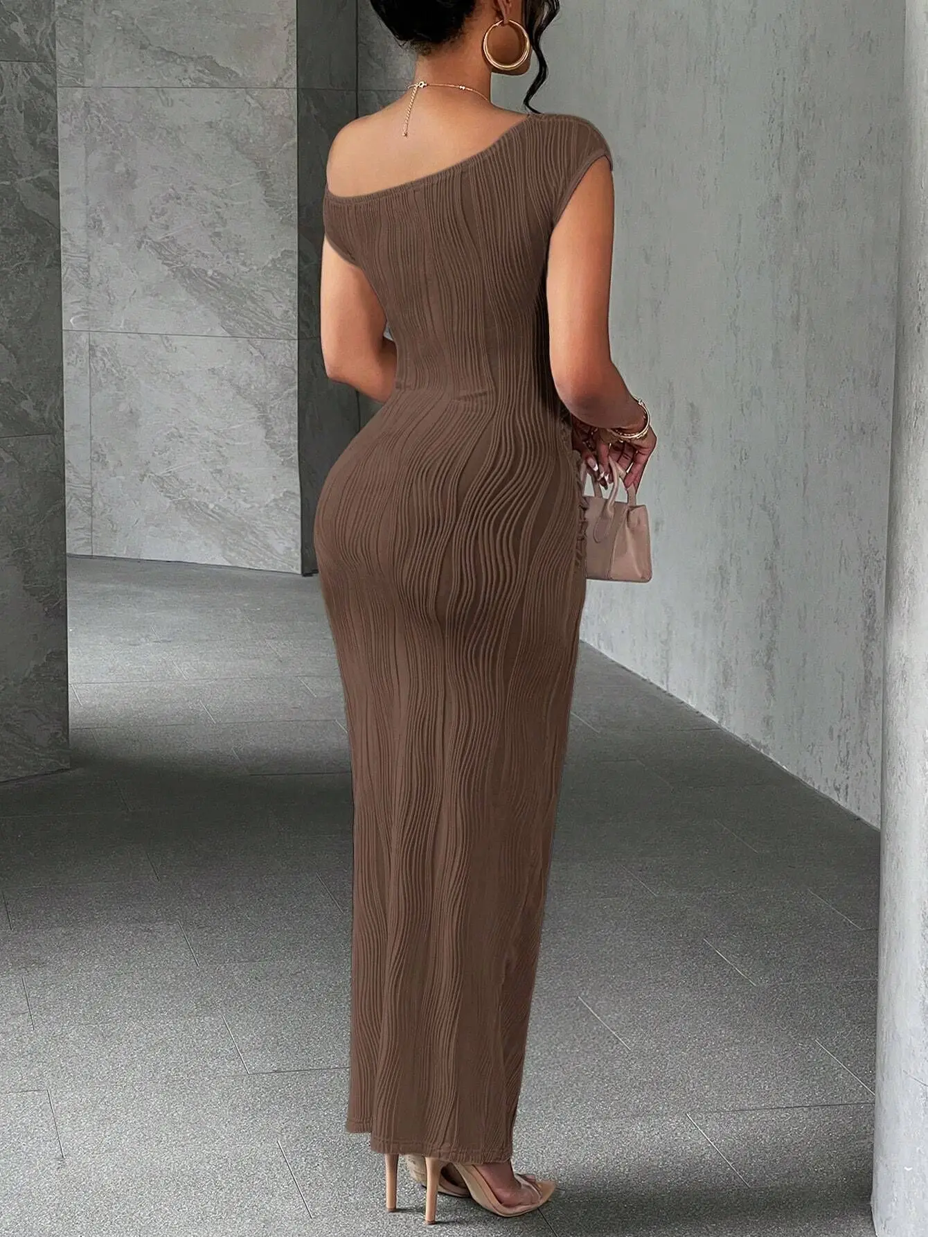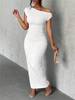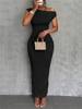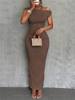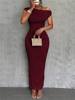 Fashion Water Ripple Slanted Shoulder Dress Women’s Elegant And Simple Solid Color A-line Collar Mid-waist Sexy Hip Wrap Skirt