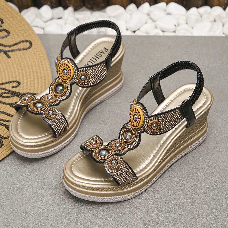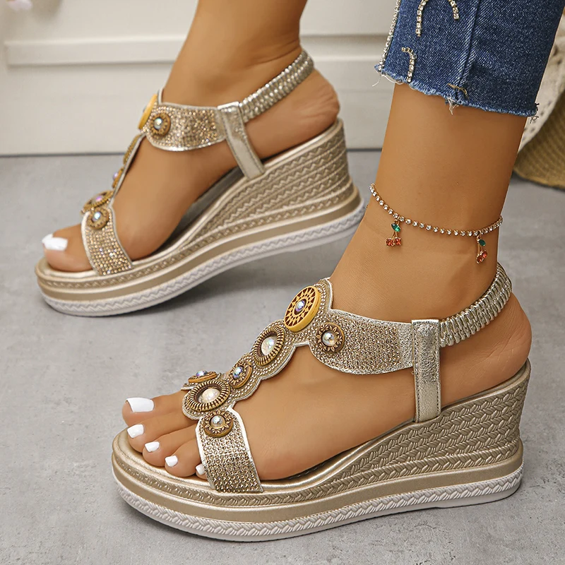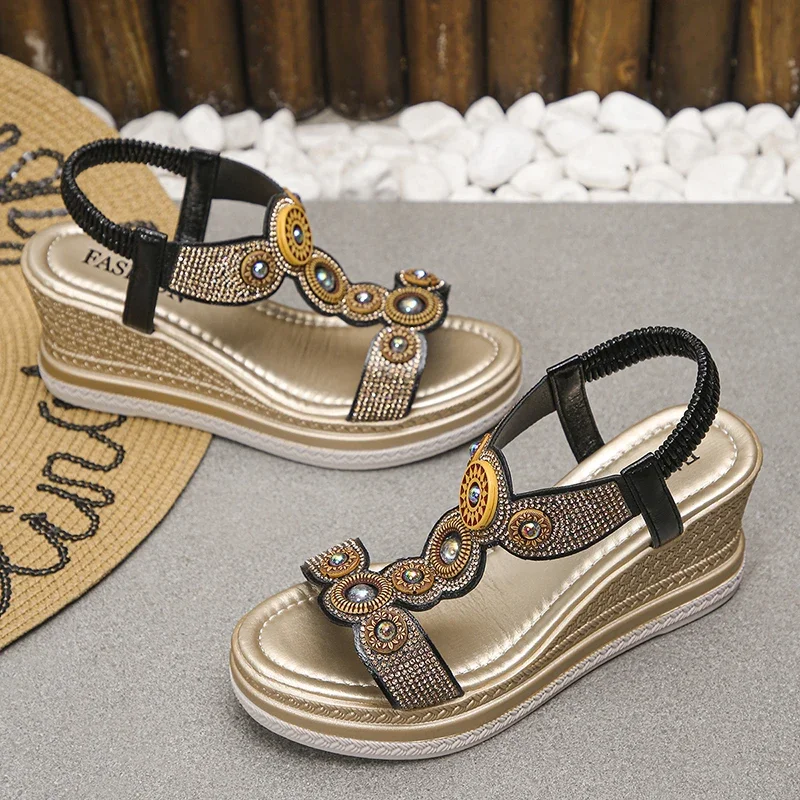 Fashion Women Shoes Crystals Wedges Heel Sandals Women Summer Chunky Platform Bohemian Sandalias Mujer Slip on High Heels Sandle