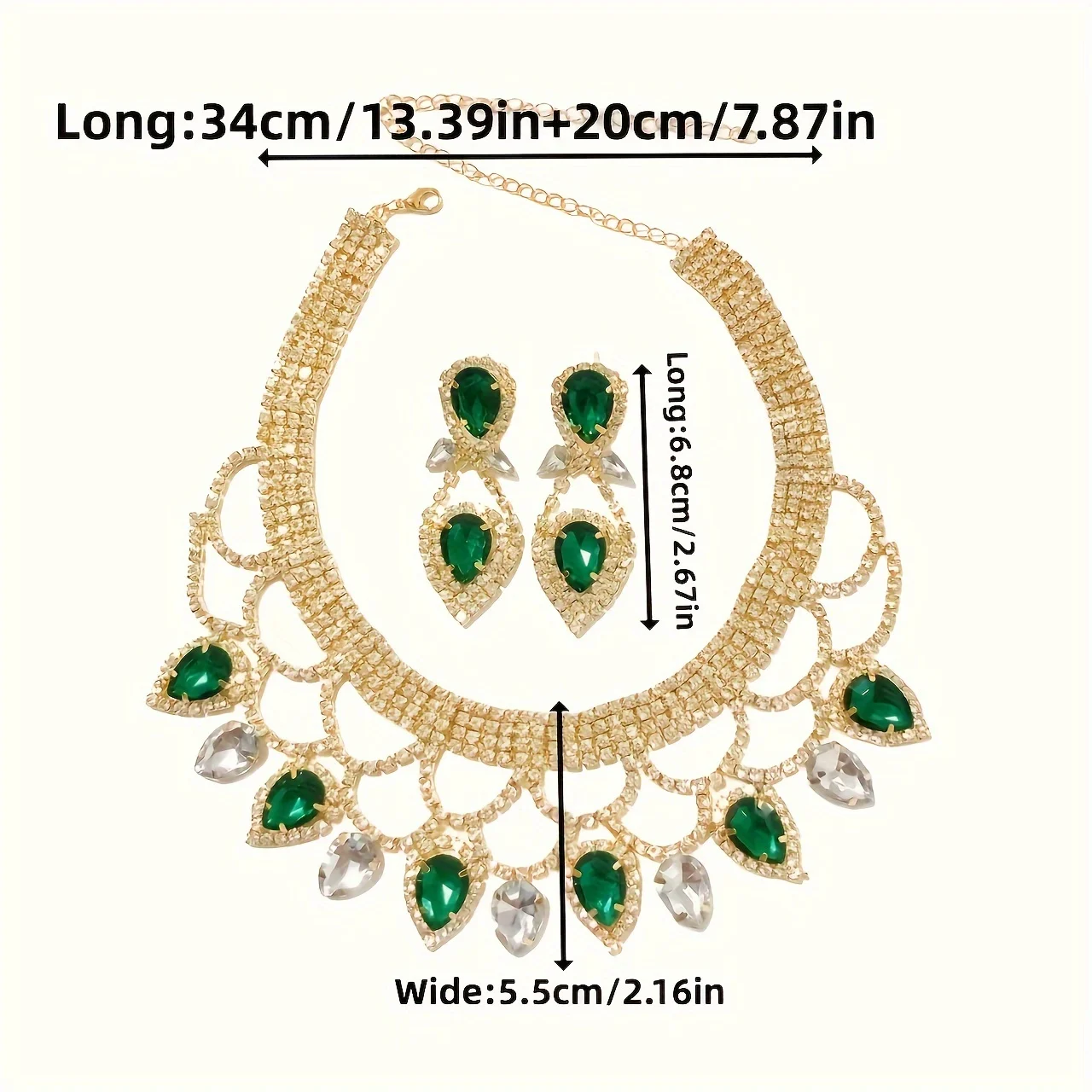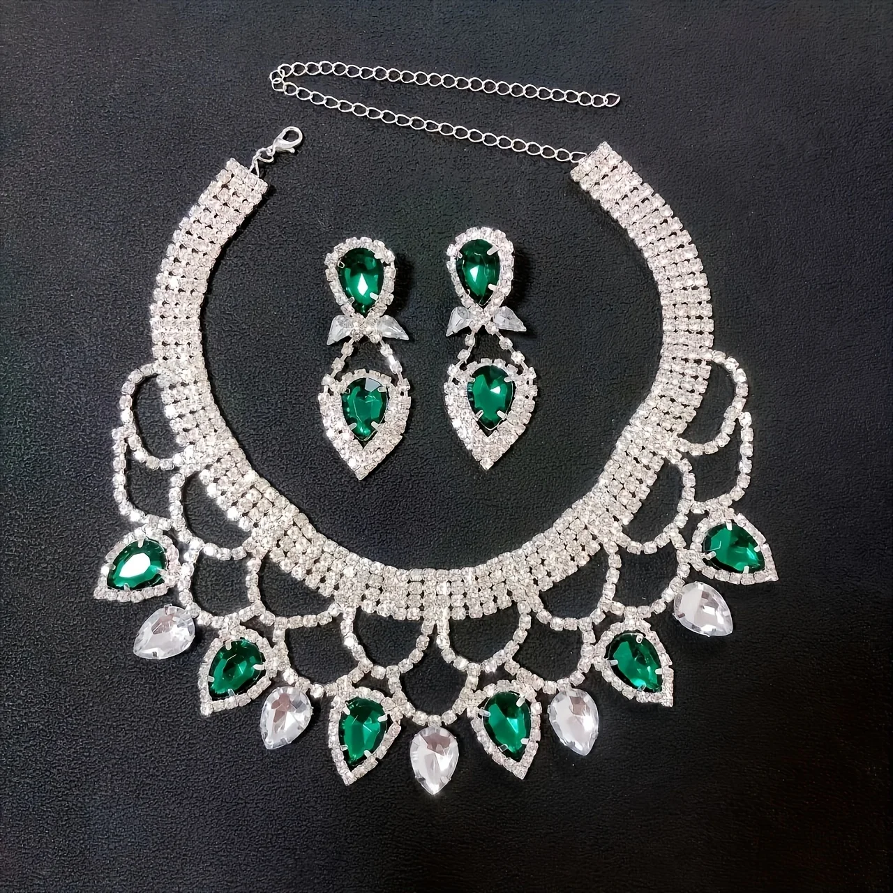 Fashionable ladies’ exaggerated and exquisite handmade rhinestone necklace earring set, bride’s dance dress jewelry accessories
