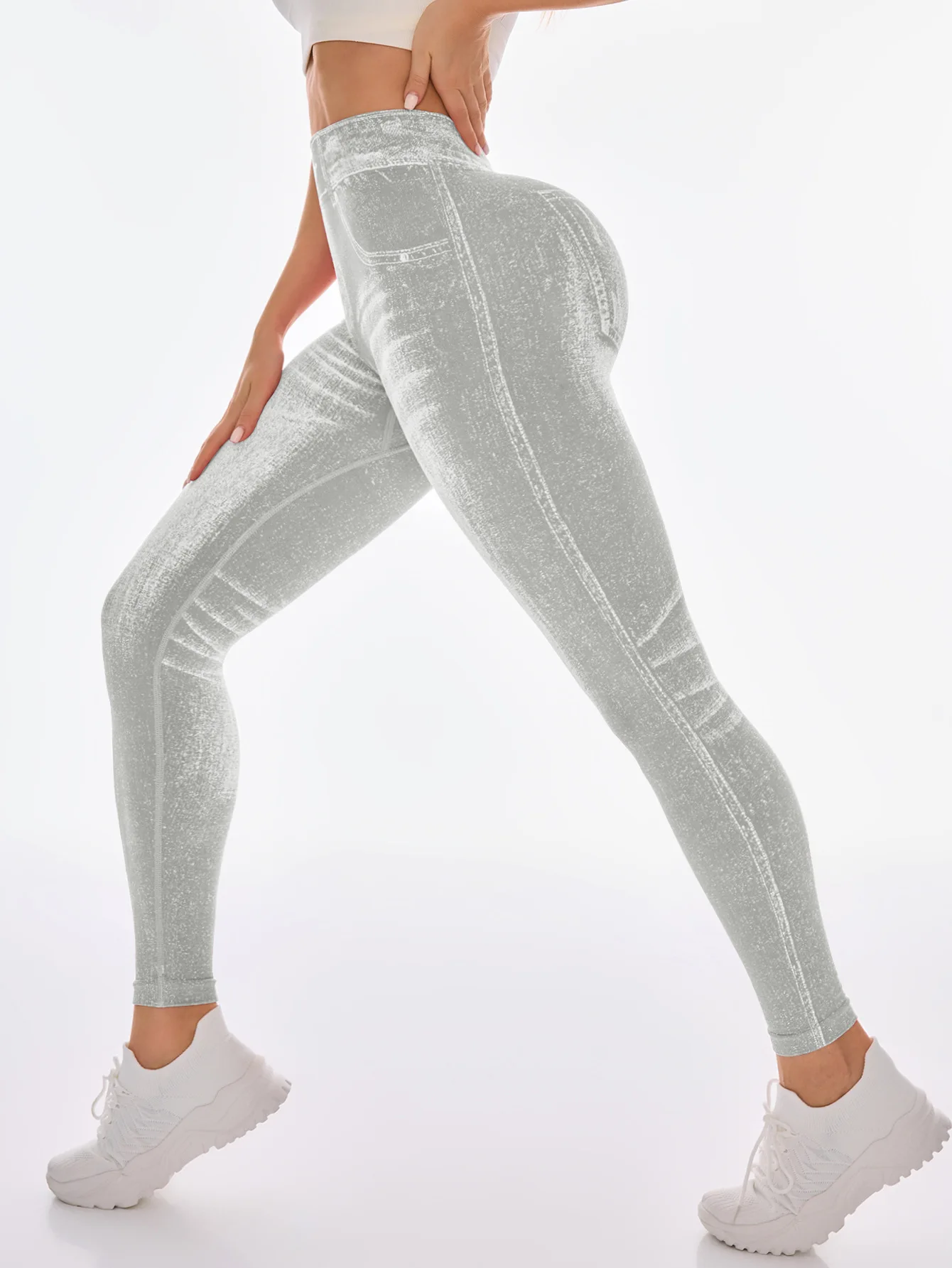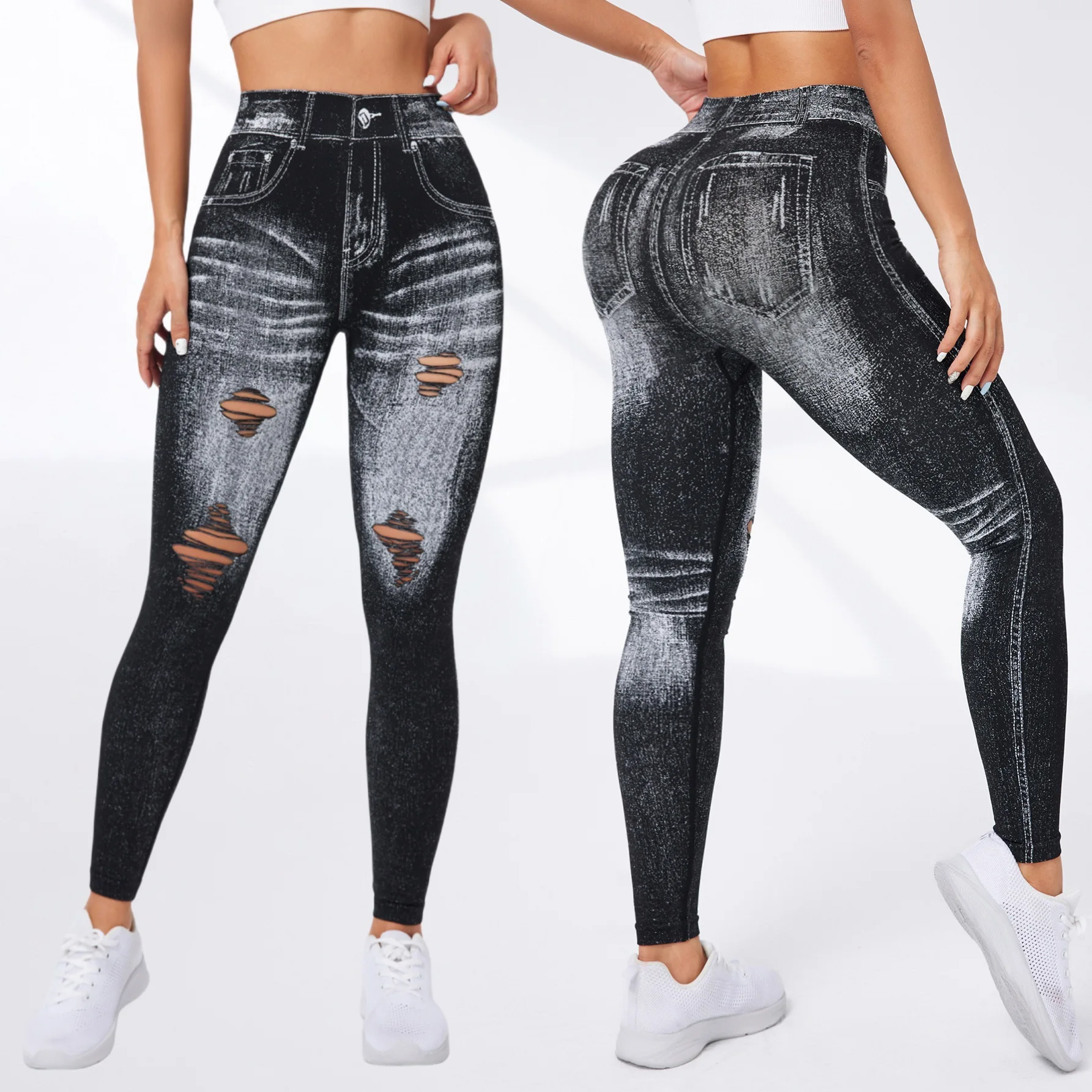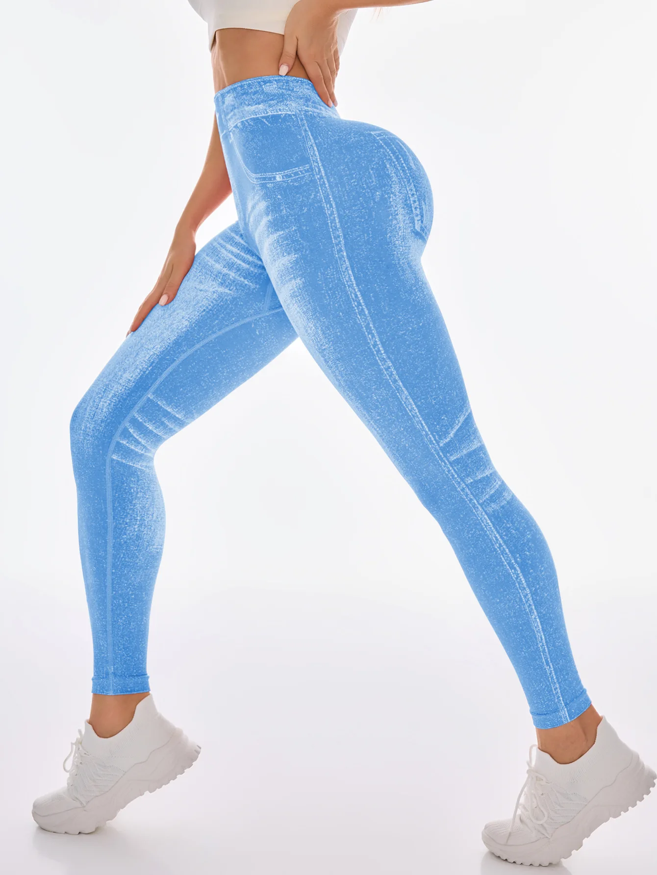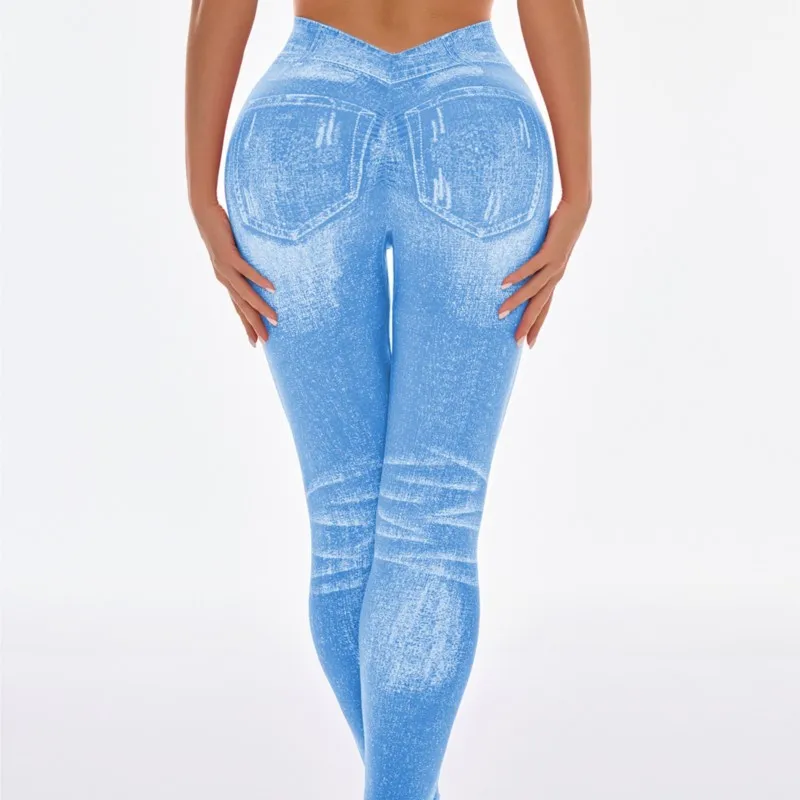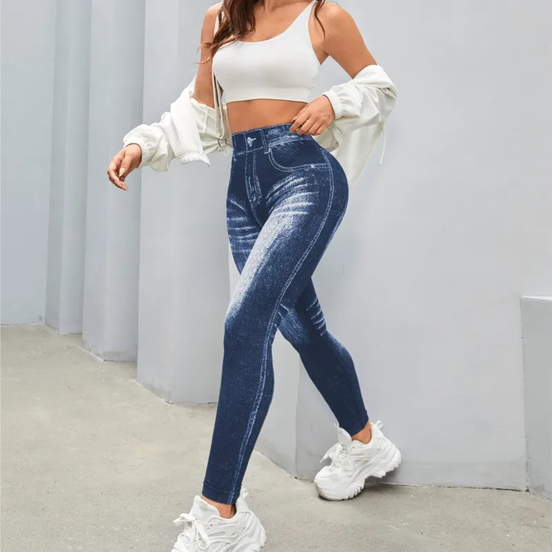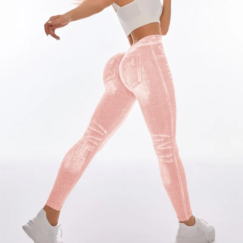 Fashionable Seamless High Stretch Imitating Denim Legging Tight Pants For Women Elastic Fitness Yoga Pants Sexy Pencil Pants