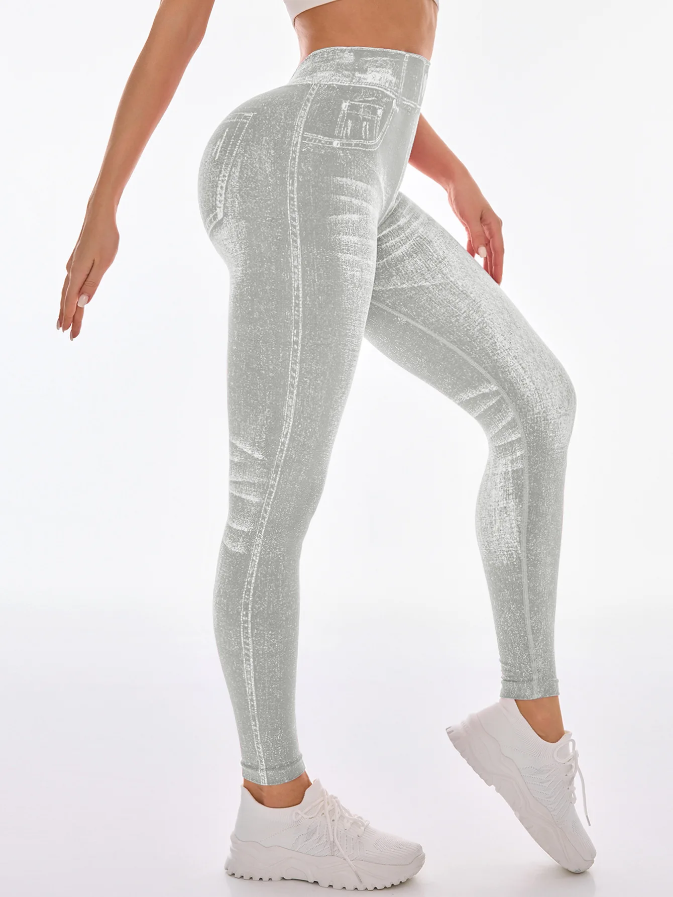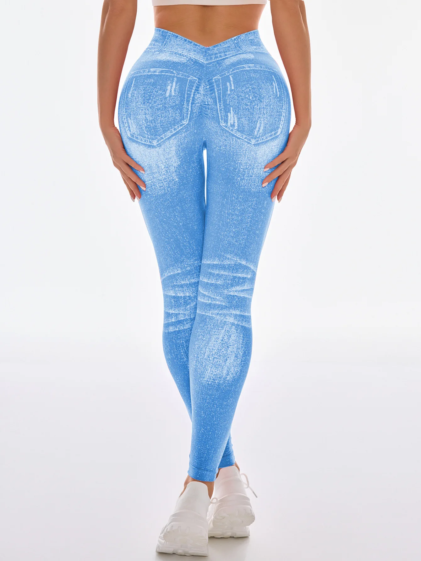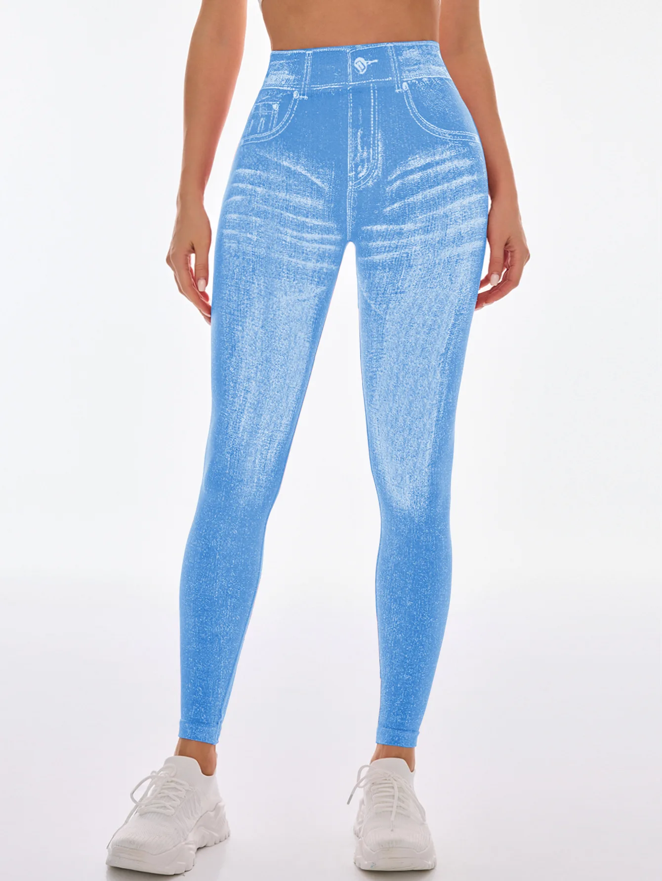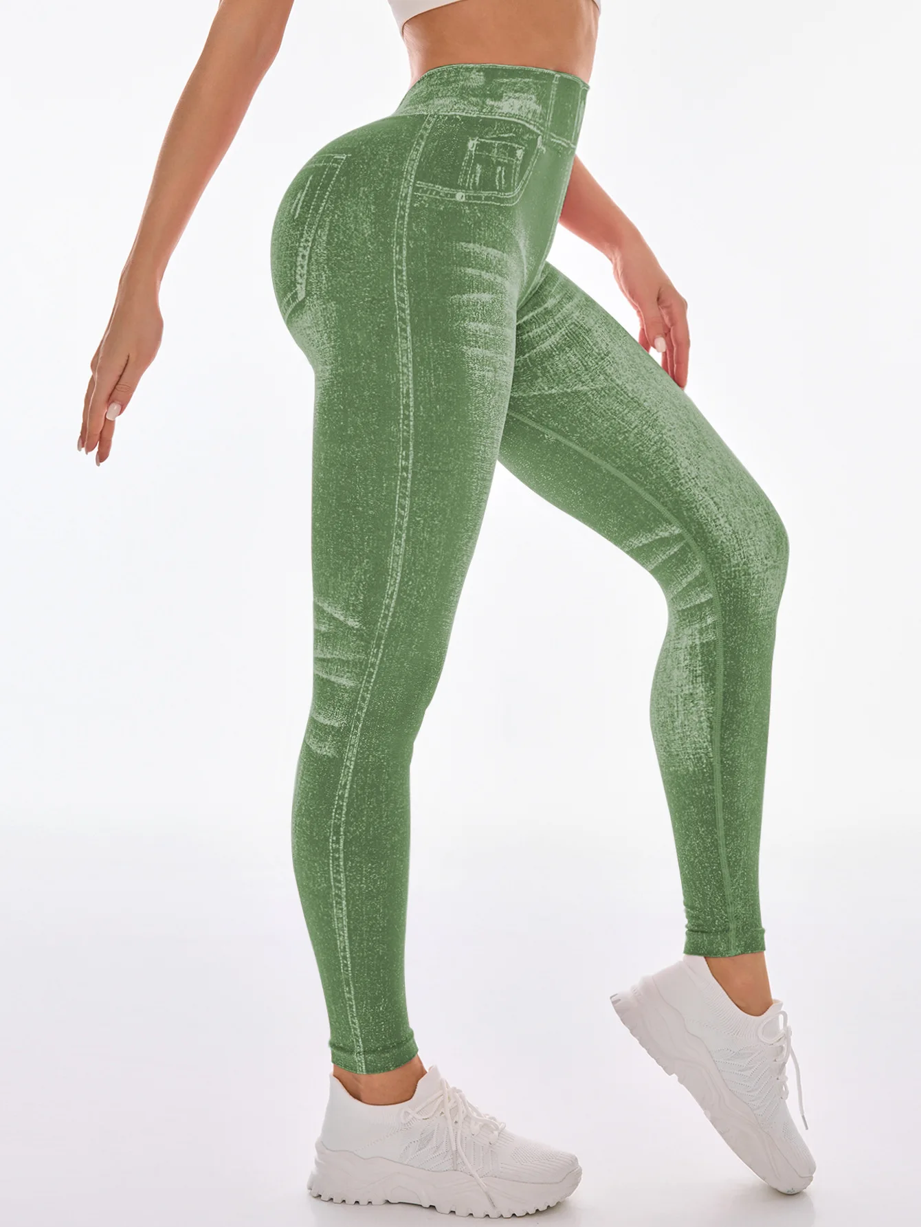 Fashionable Seamless High Stretch Imitating Denim Legging Tight Pants For Women Elastic Fitness Yoga Pants Sexy Pencil Pants