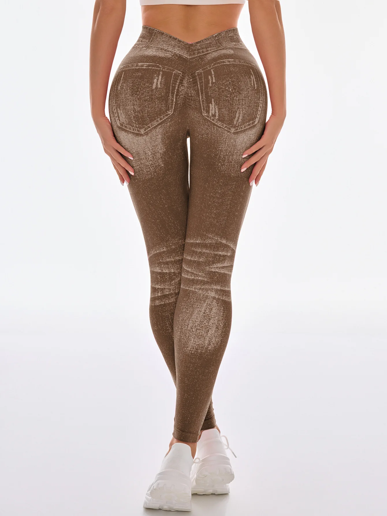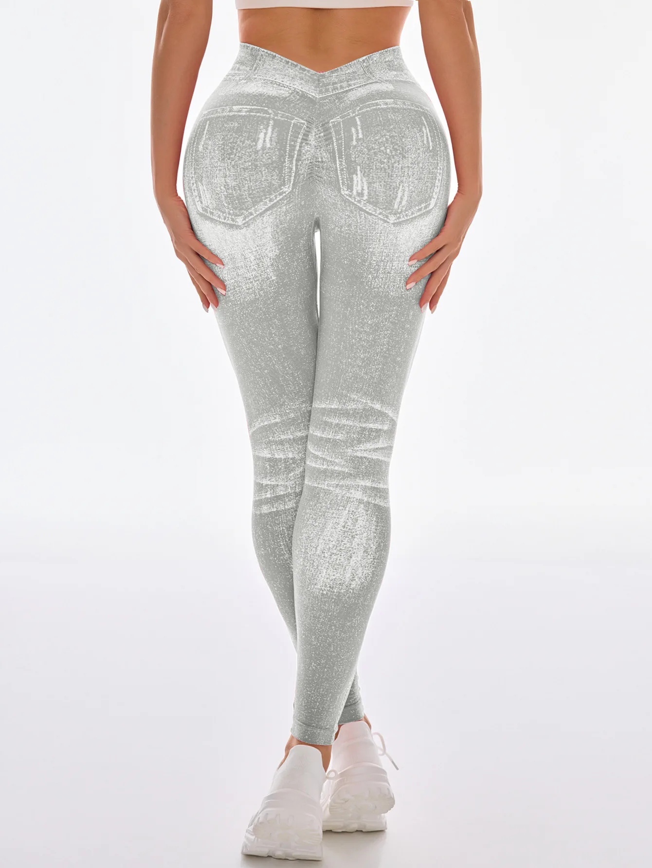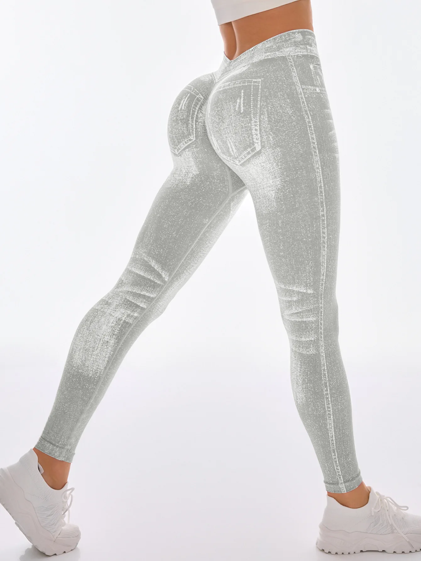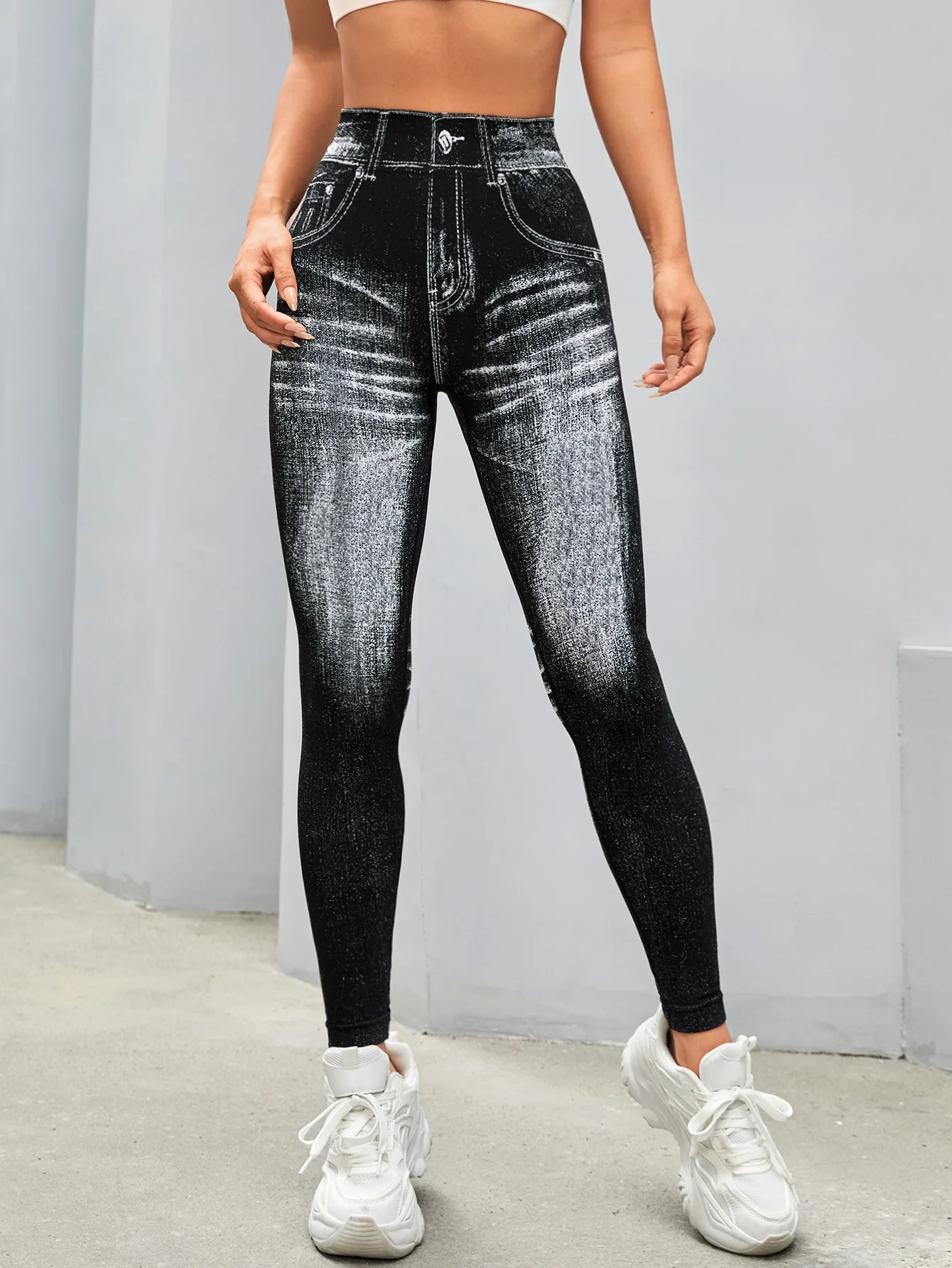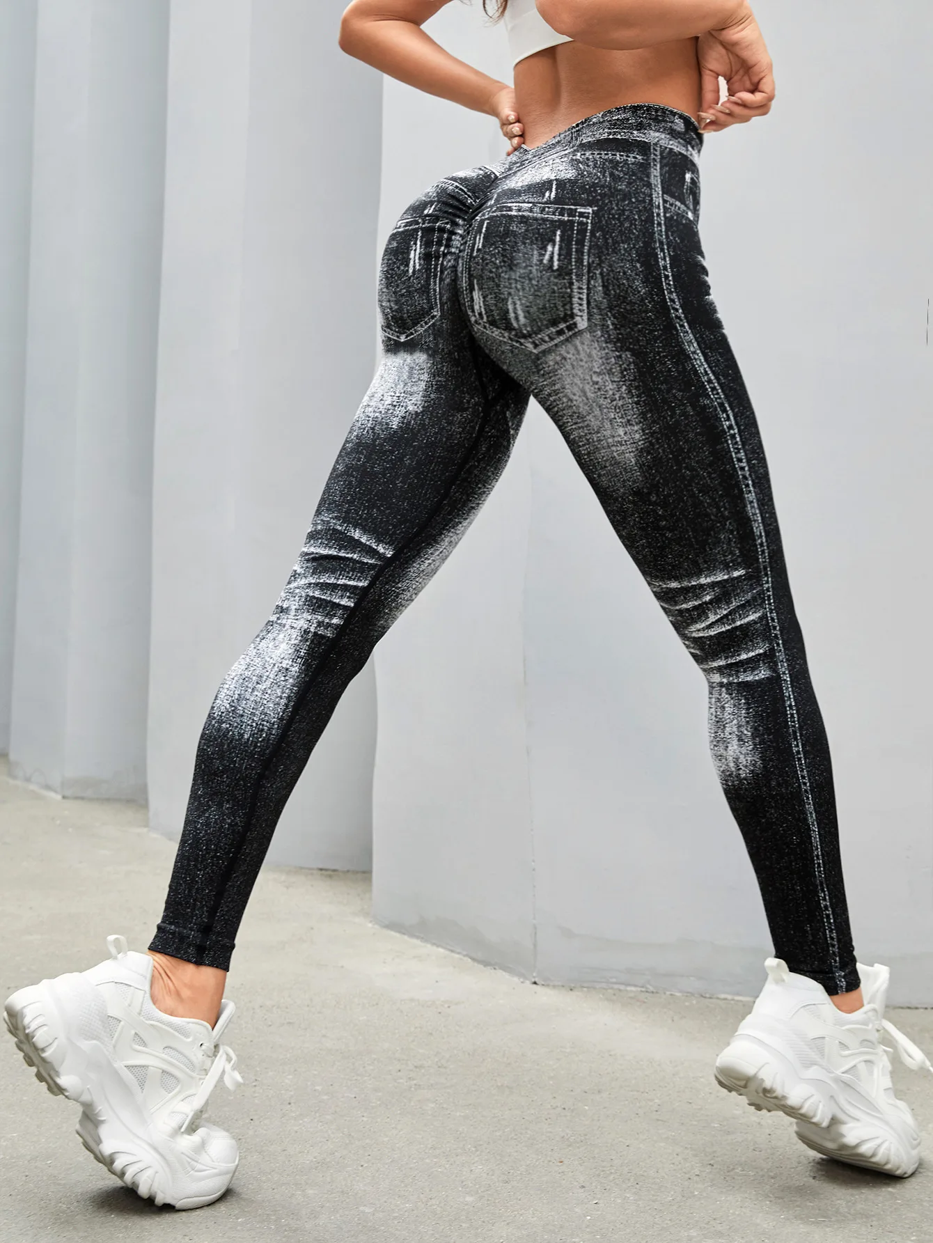 Fashionable Seamless High Stretch Imitating Denim Legging Tight Pants For Women Elastic Fitness Yoga Pants Sexy Pencil Pants