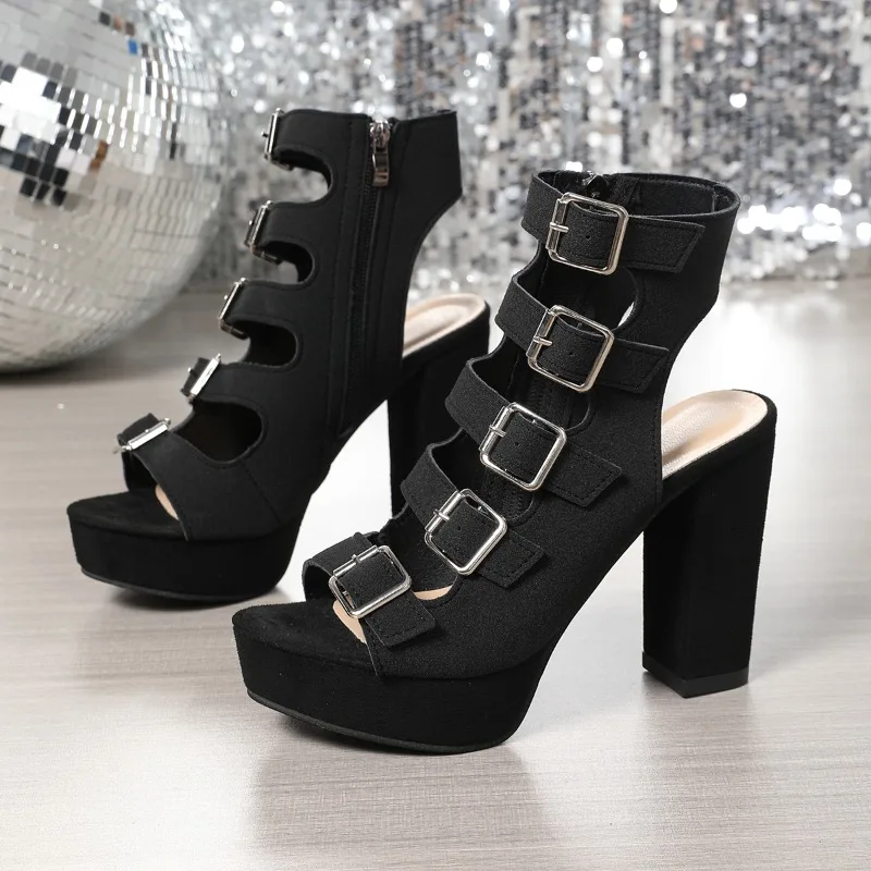 Fish Mouth Sandals Women Summer New Platform Fashion Cutout Metal Buckle Non-slip Block Heel Roman High Heels