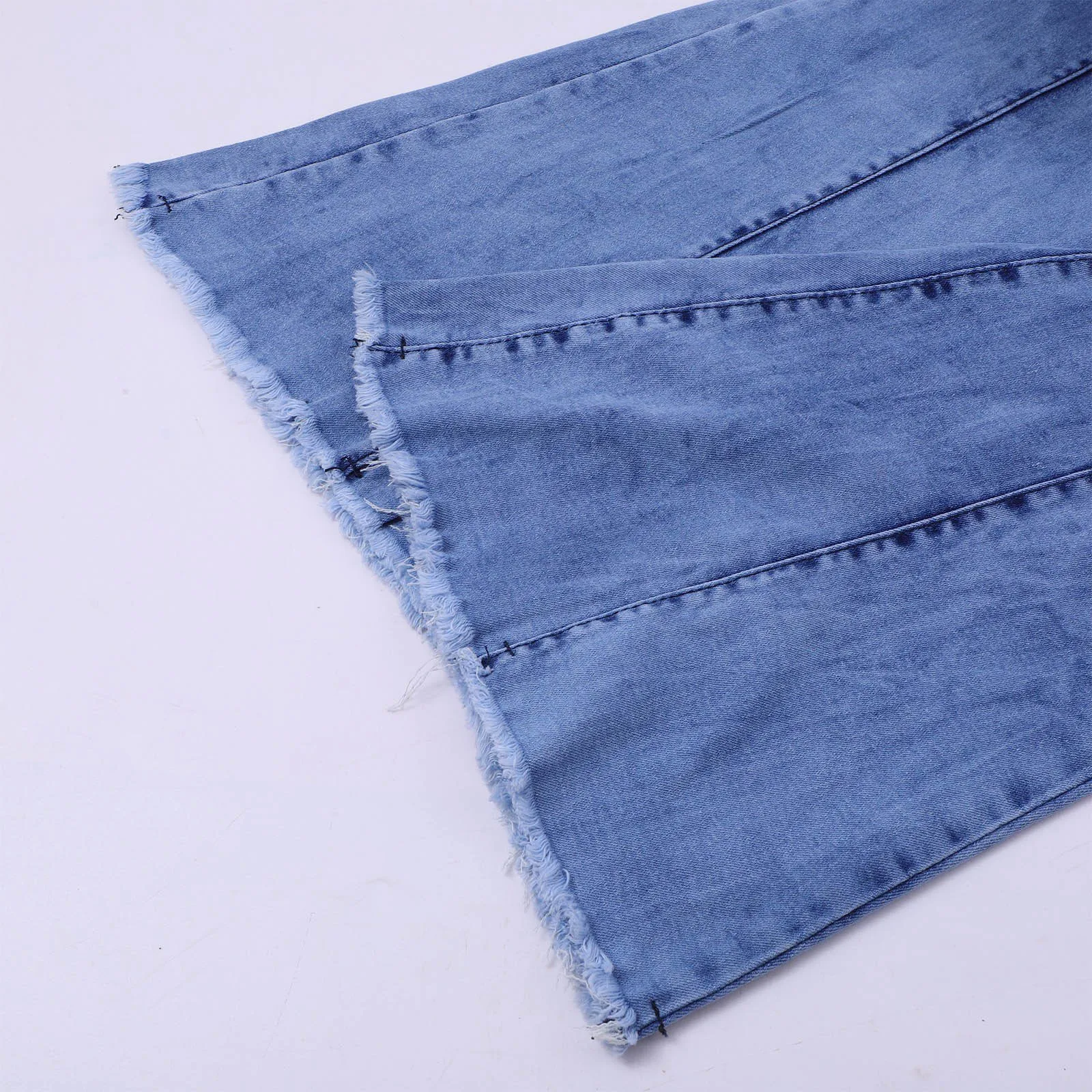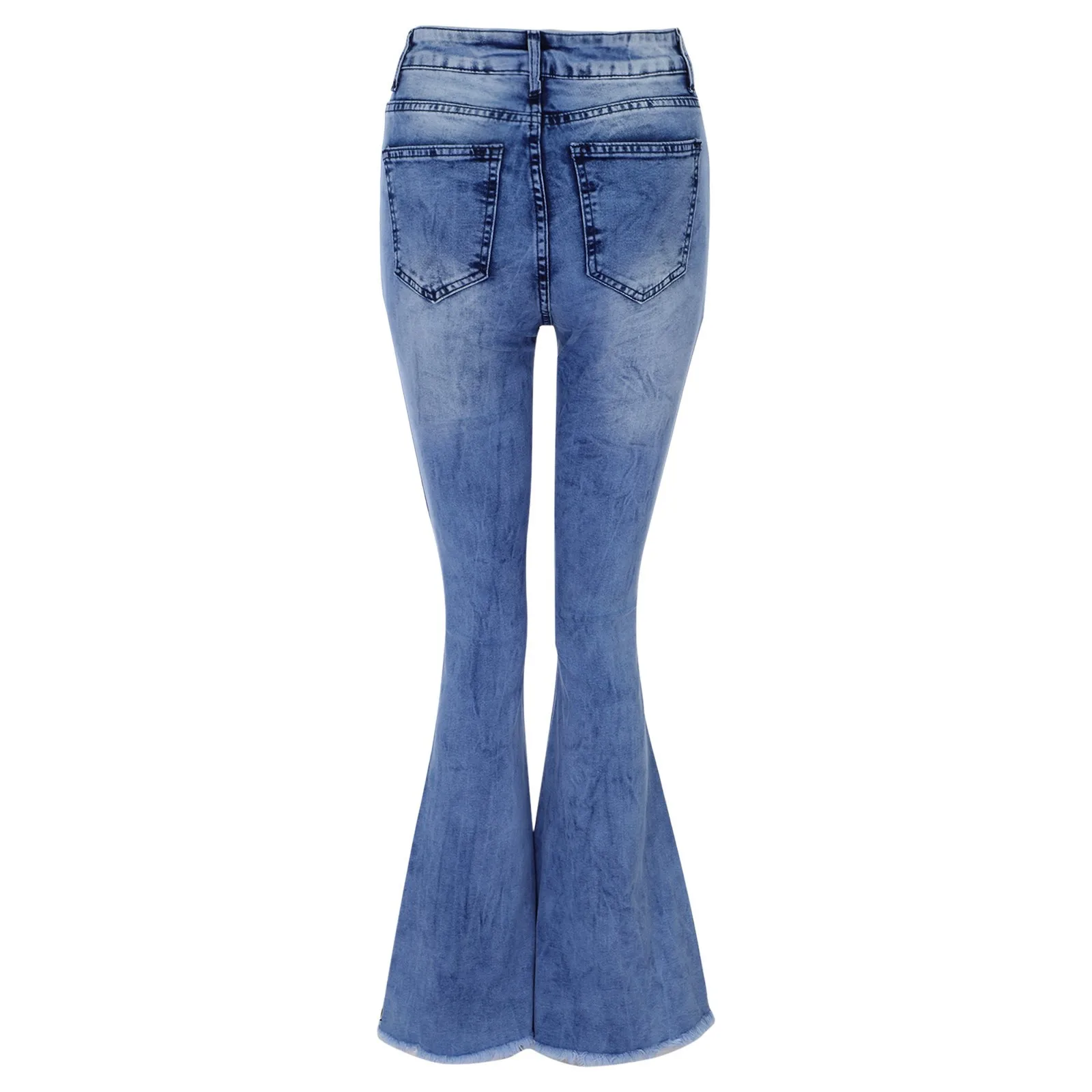 Women’S Jeans Stretch High Waist Frayed Denim Flare Pants Girl Denim Pants Flared Casual Pants
