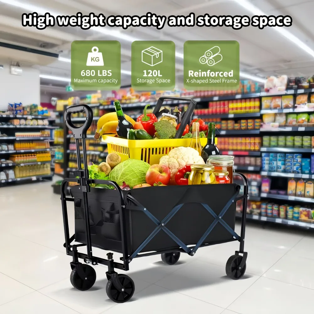 Foldable Portable Picnic Outdoor Camping Cart Heavy Duty Folding Utility Cart Shopping Beach Collapsible Folding Utility Cart