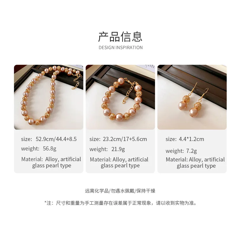 French Retro Geometric Pearl Necklace Earring Fashion Design Temperament Collarbone Chain Light Luxury High-end Jewelry Sets