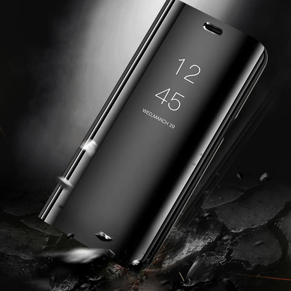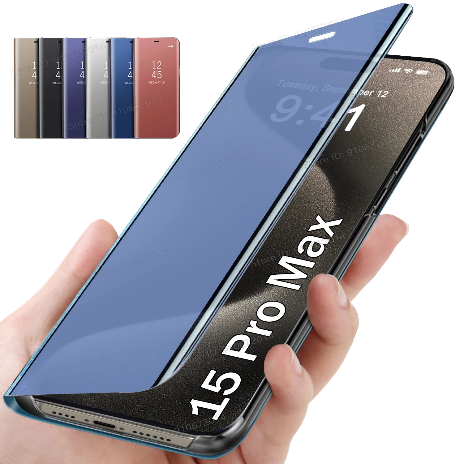 Full Protection Mirror Flip Bracket Phone Case For iPhone 16 17 Pro Max Air Folding Stand Cases For iPhone 16e 15 14 Plus 13 12 11 Pro Max SE 2022 7 8 Shockproof Back Cover Bumper