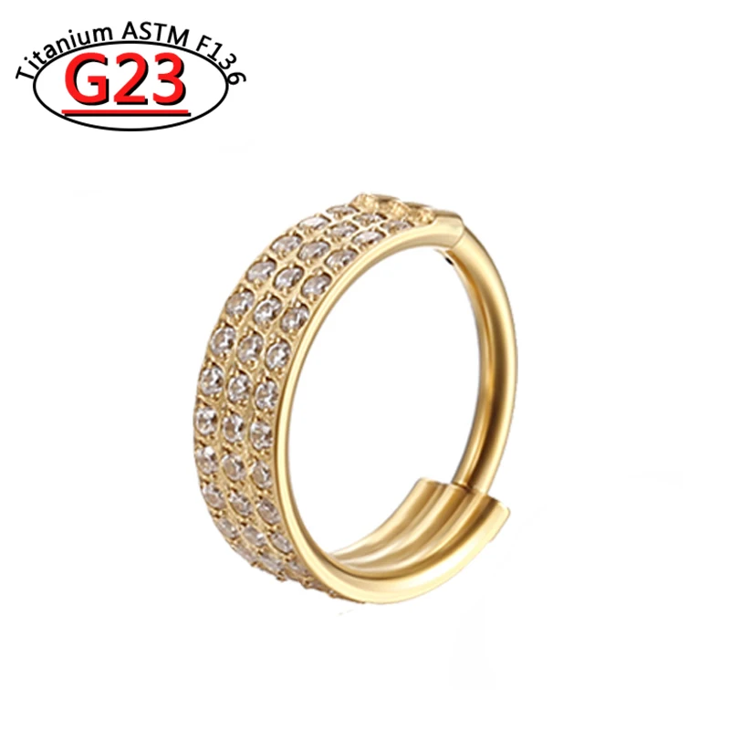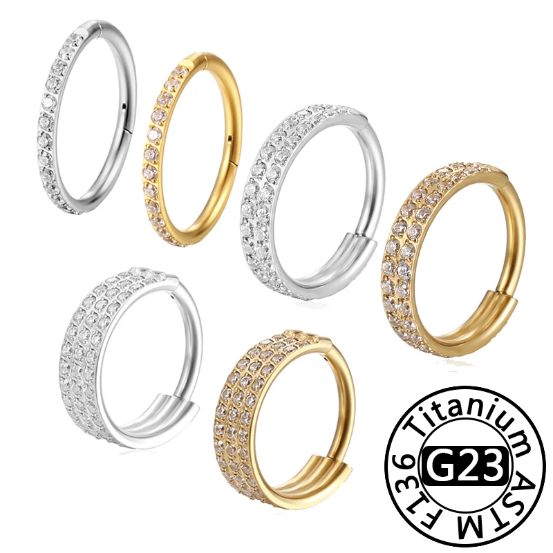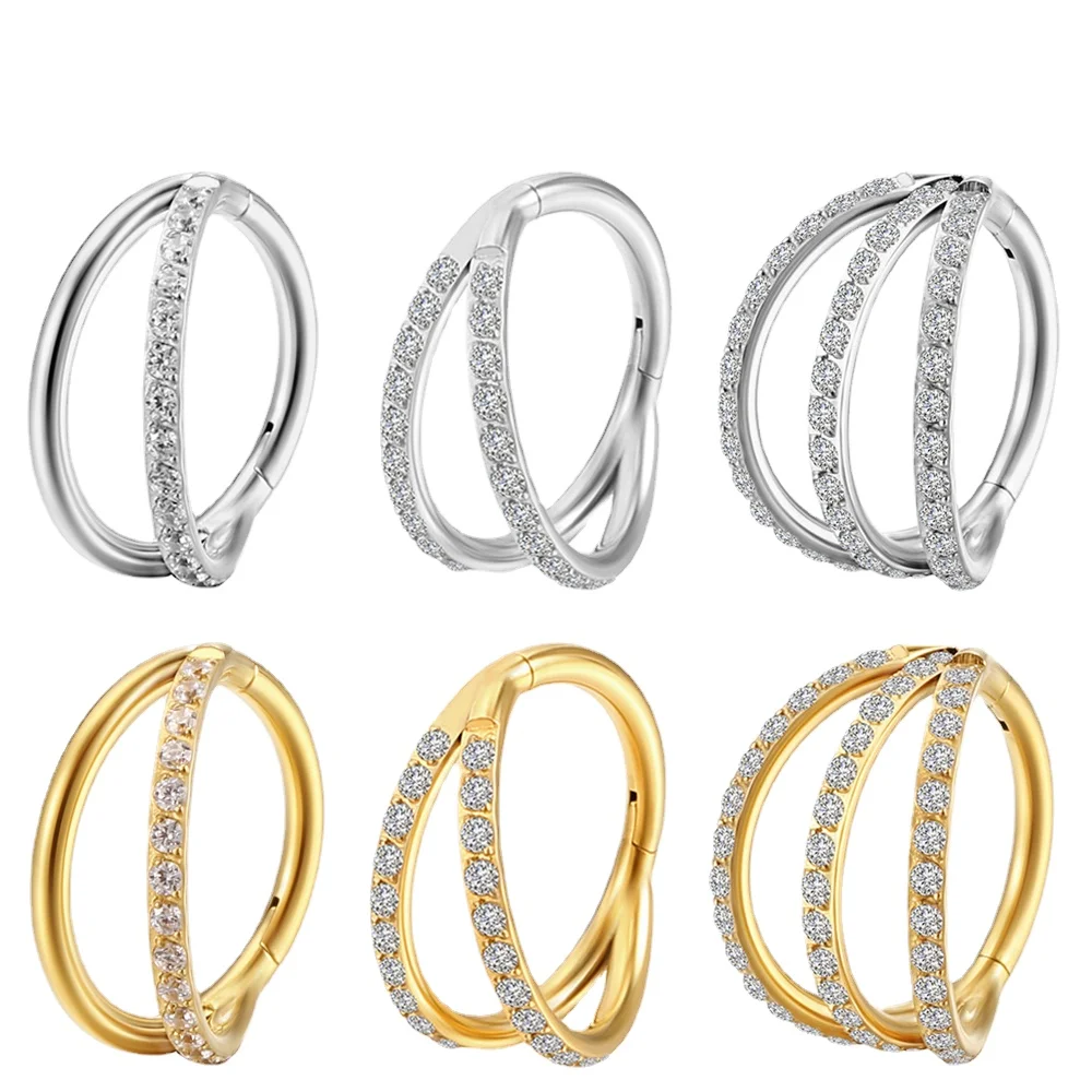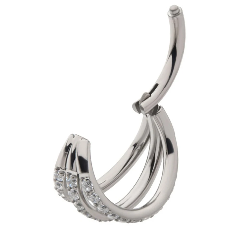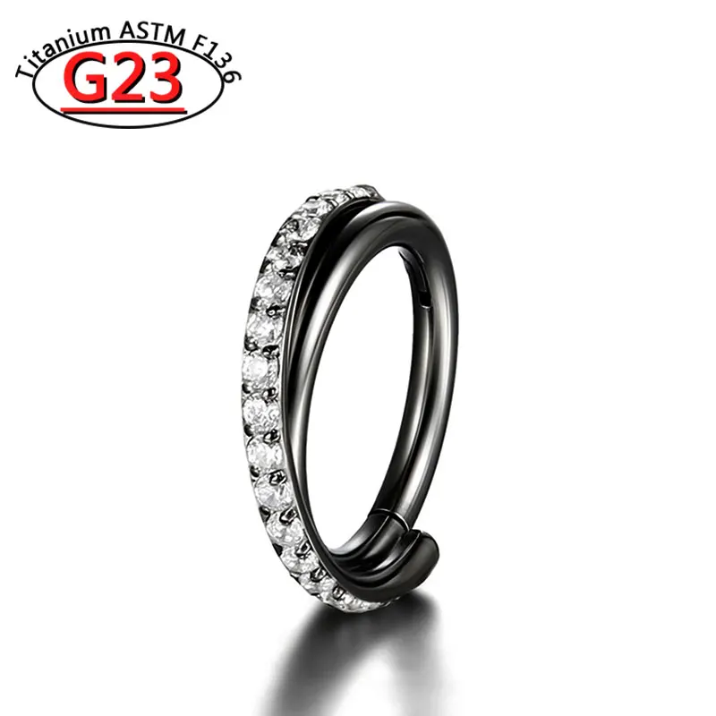 G23 Titanium Piercing Double Layered Triple Stack Hinged Zircon Nose Ring Helix Cartilage CZ Small Cartilage Septum Clicker