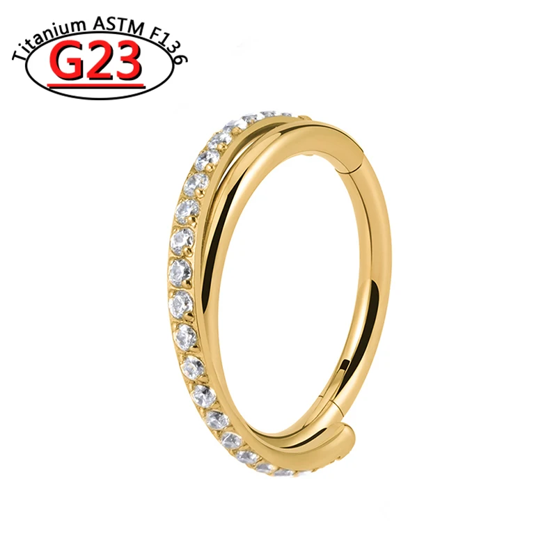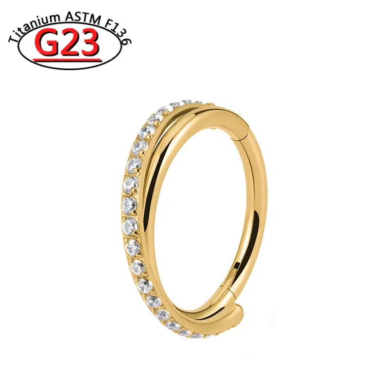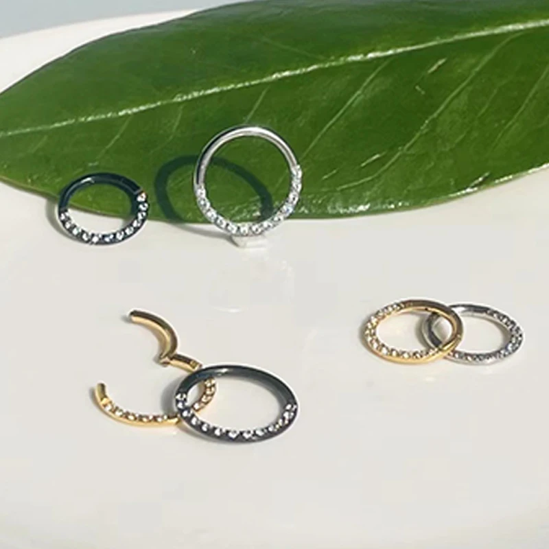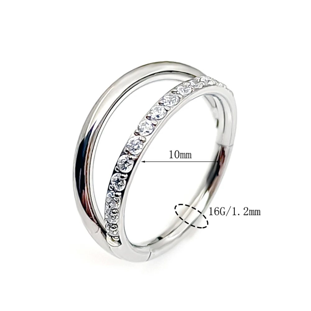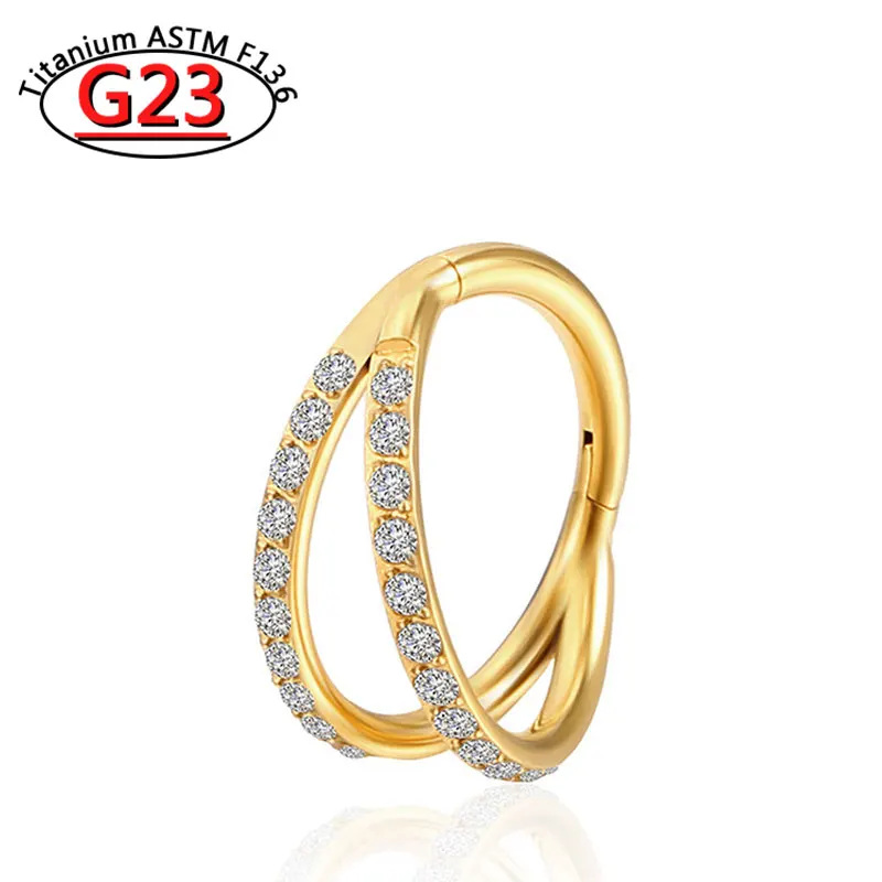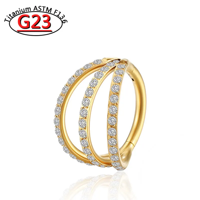 G23 Titanium Piercing Double Layered Triple Stack Hinged Zircon Nose Ring Helix Cartilage CZ Small Cartilage Septum Clicker