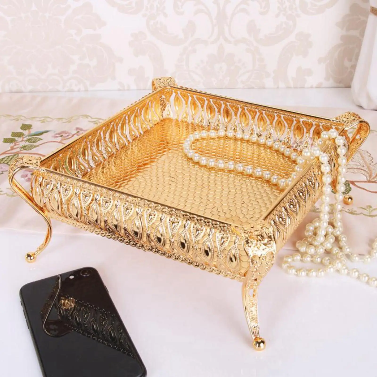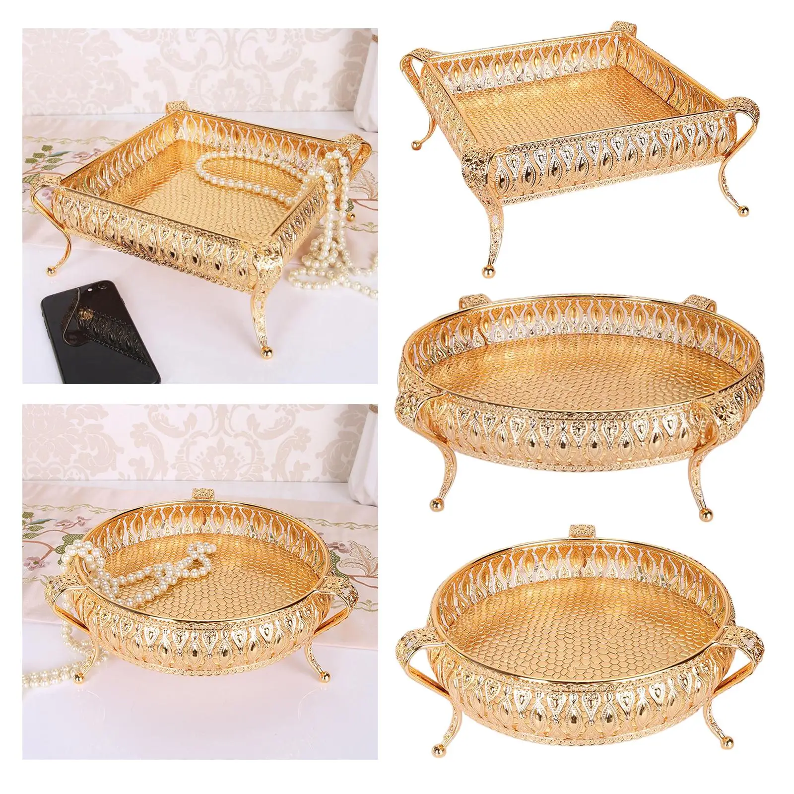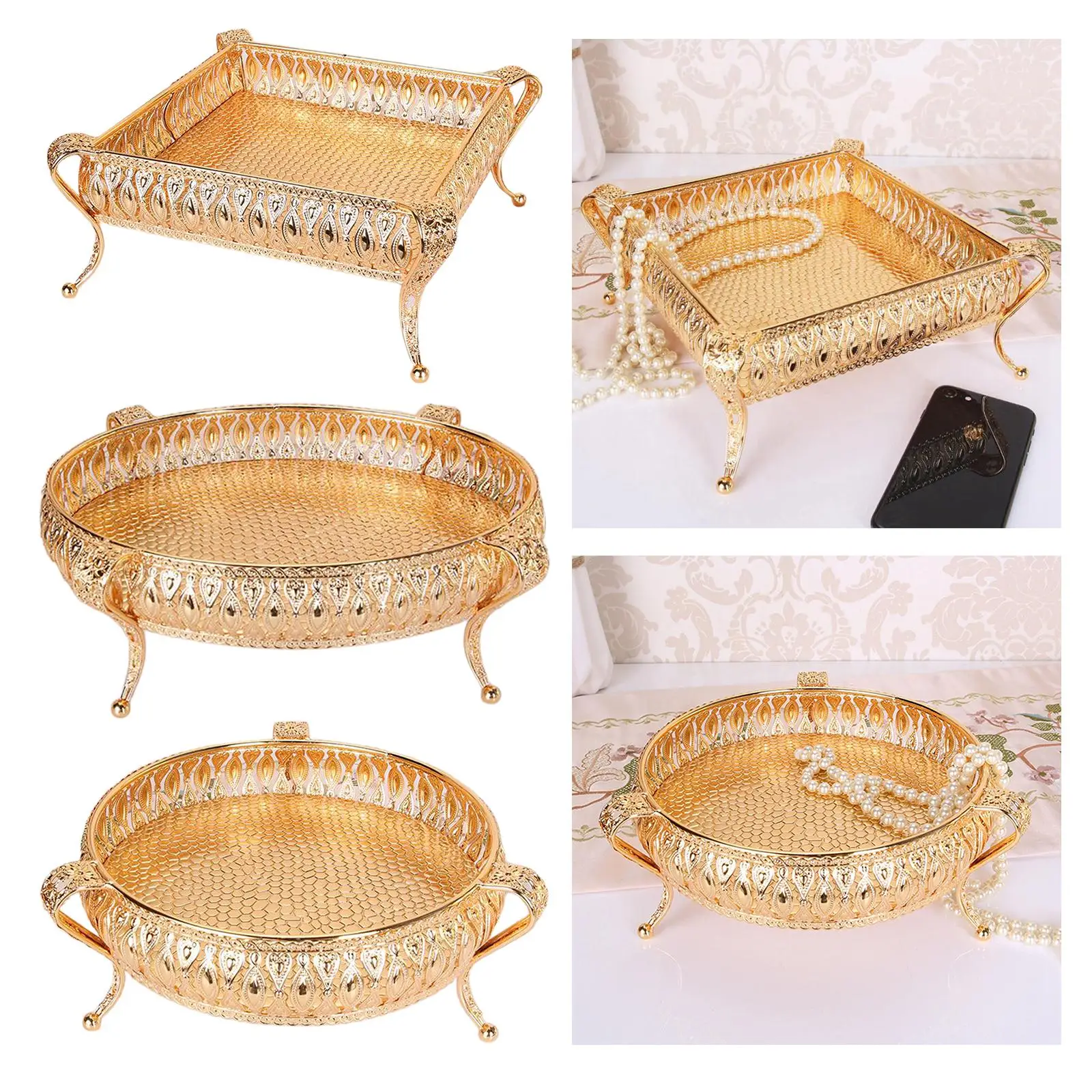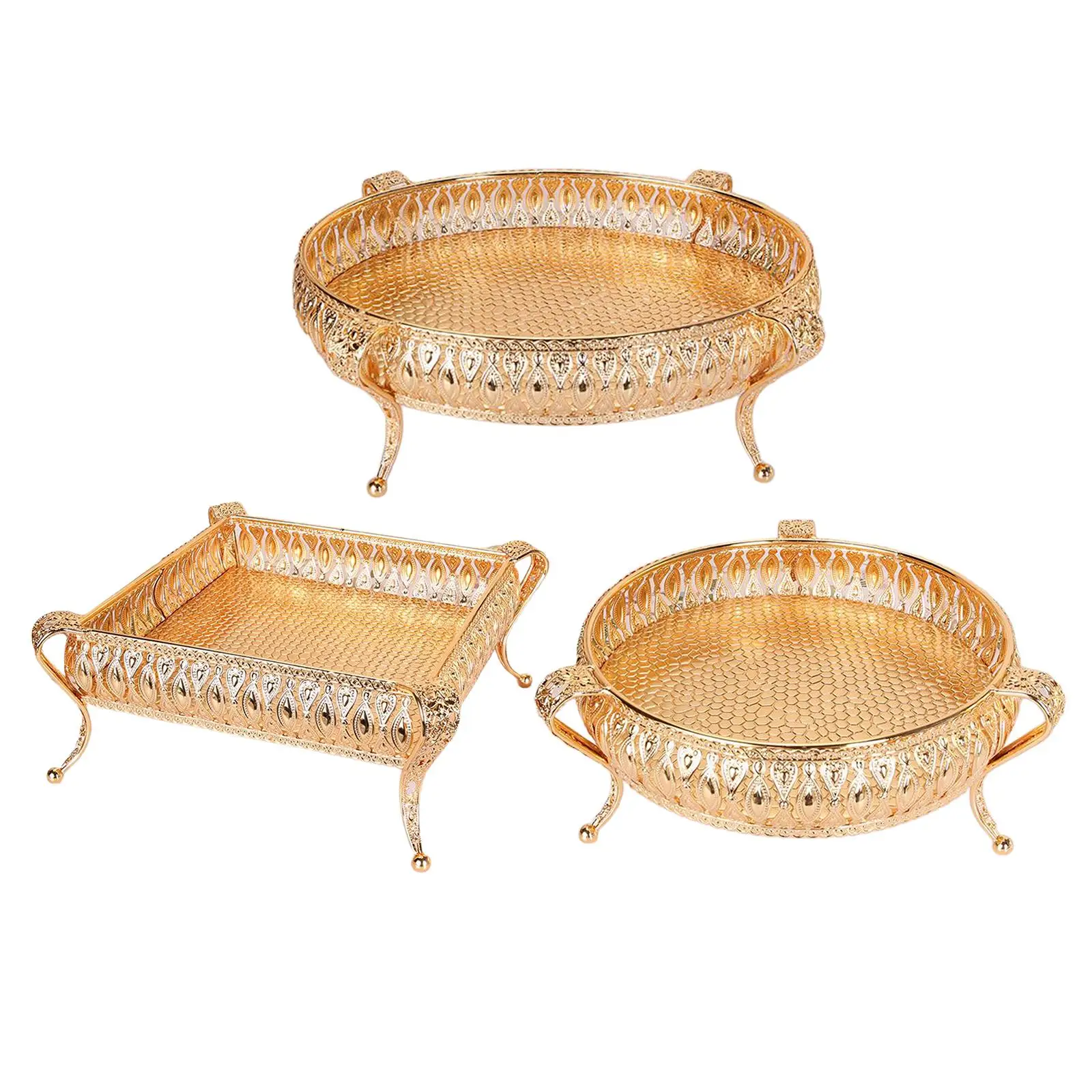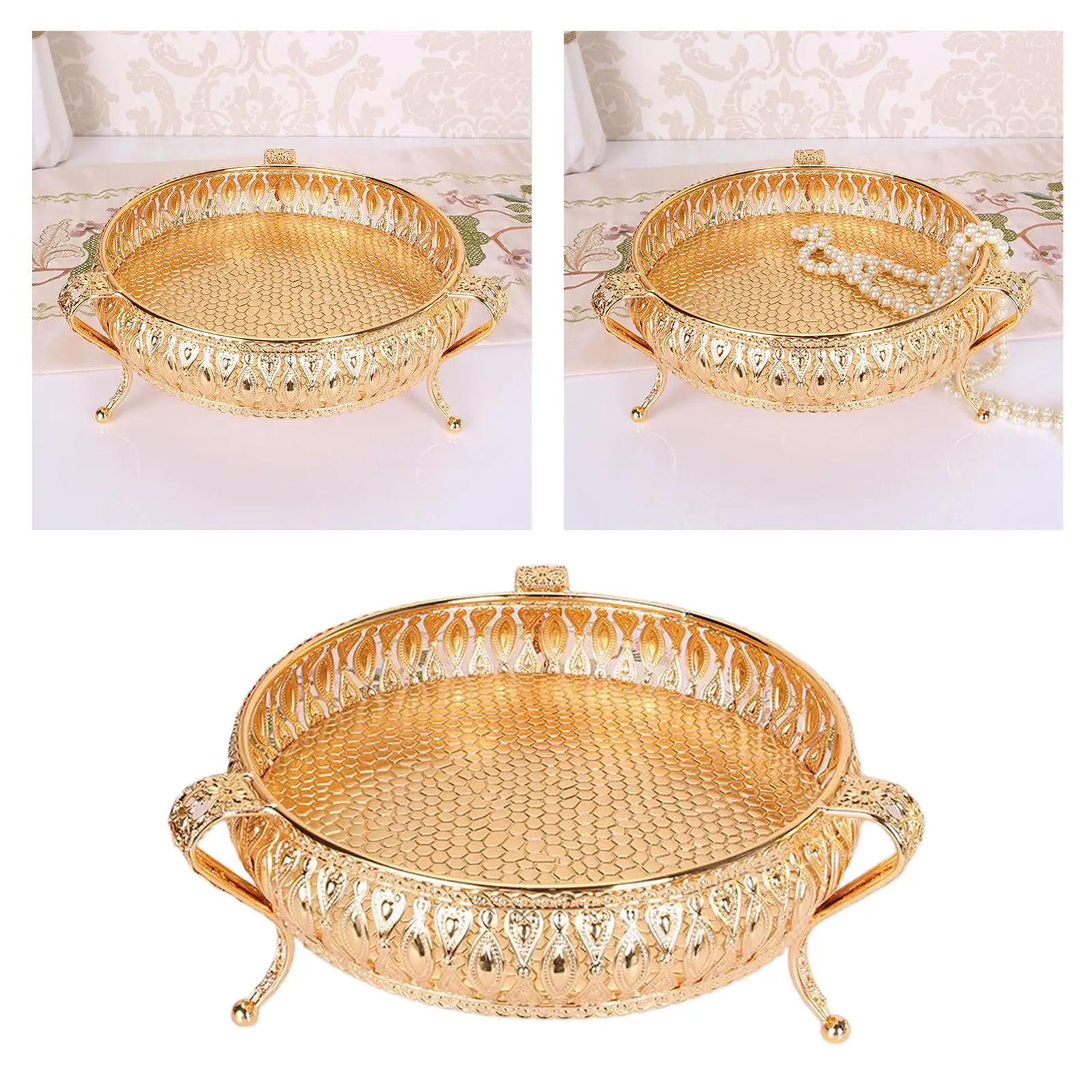 Golden Metal Fruit Bowl & Snack Tray, Elegant Decorative Storage Container for Candy, Nuts, Party Serving, Home Kitchen Decor