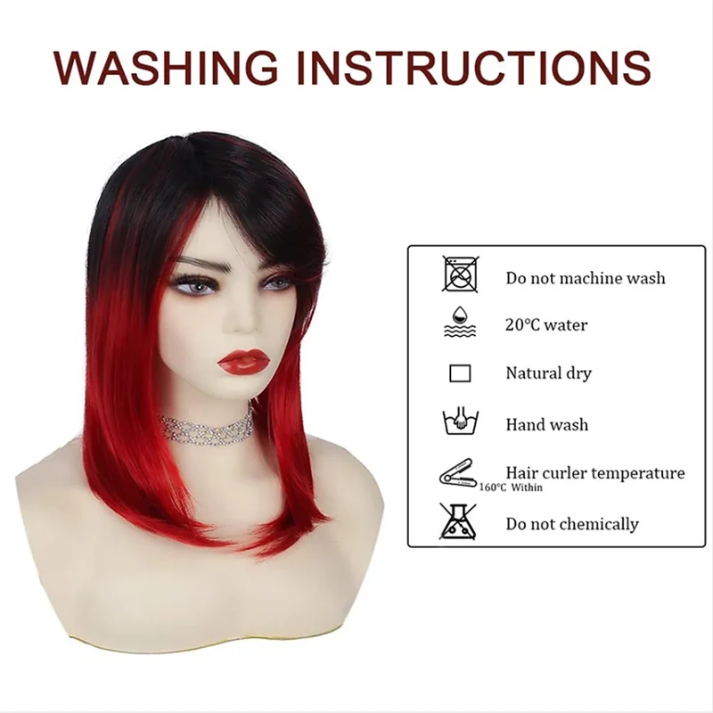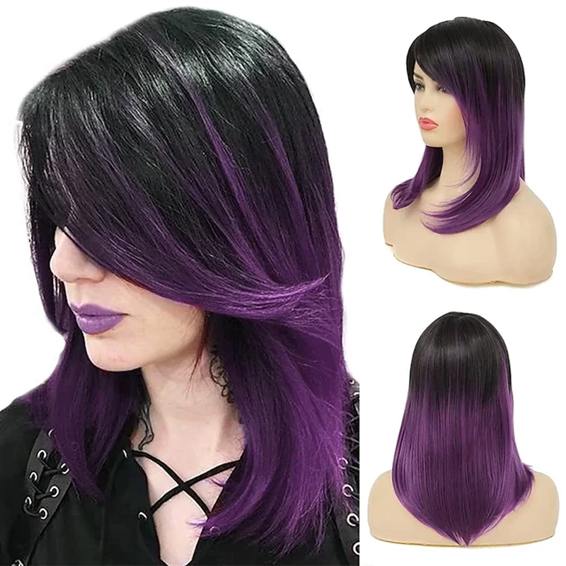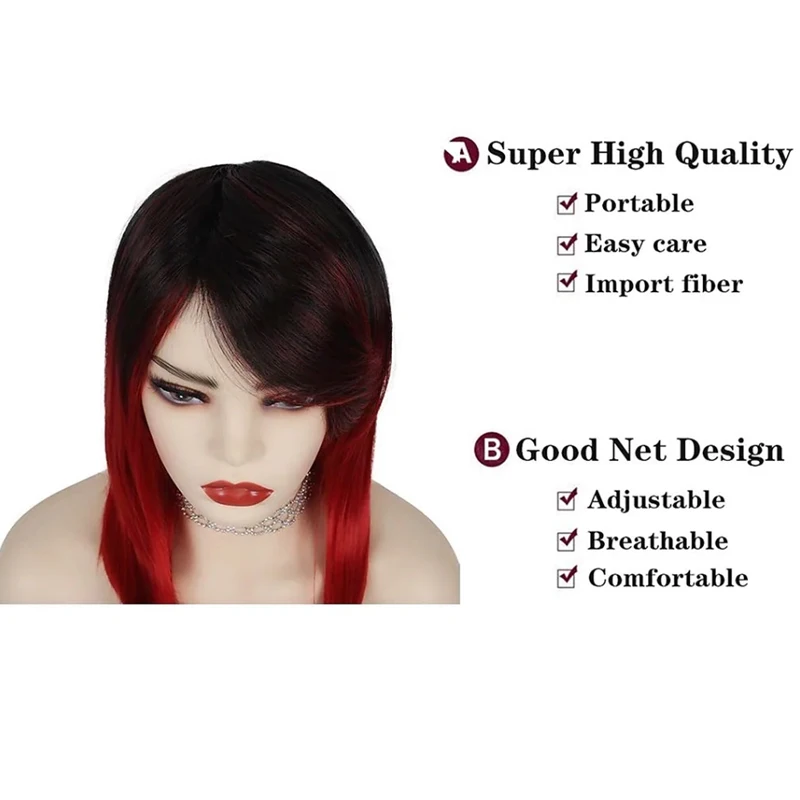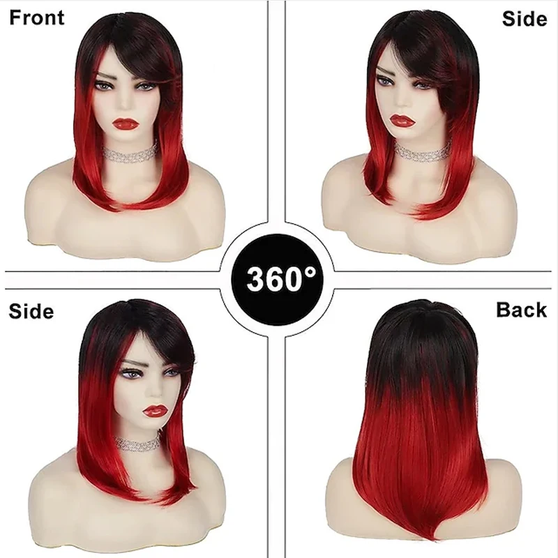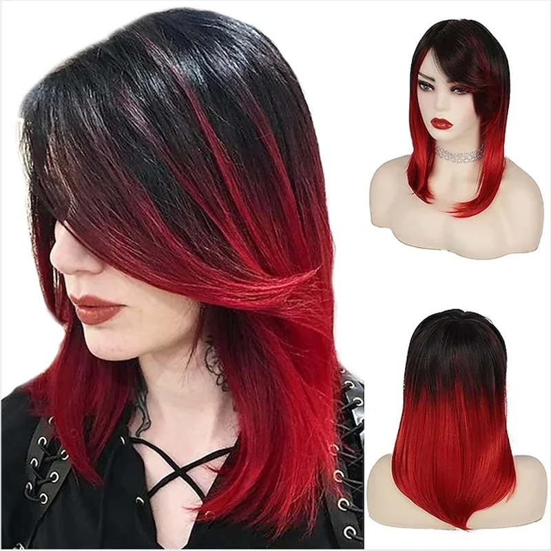 HAIRJOY Synthetic Hair Women Ombre Black Red Wig Medium Long Straight Side Part Wigs