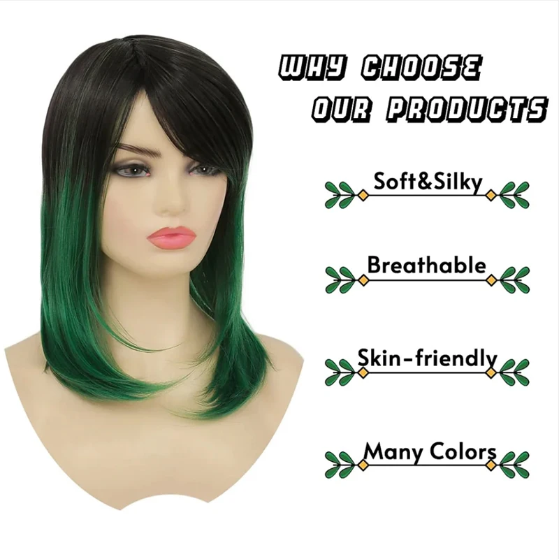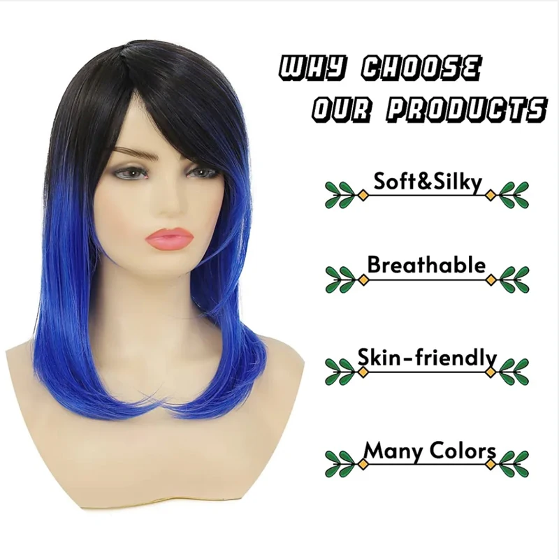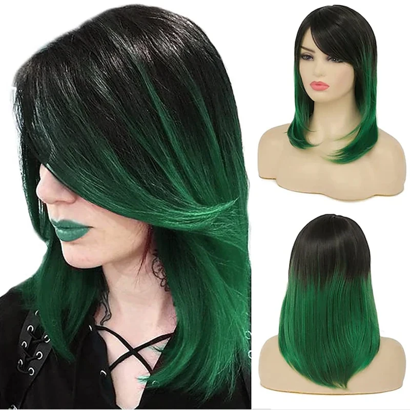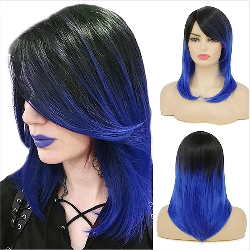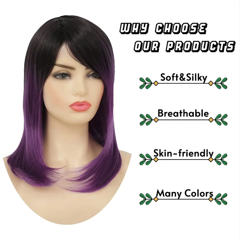 HAIRJOY Synthetic Hair Women Ombre Black Red Wig Medium Long Straight Side Part Wigs
