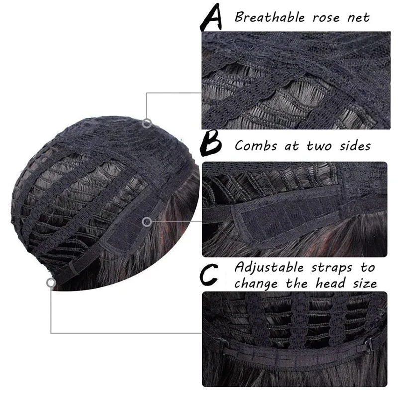 4.The inner design is adjustable, so you are able to adjust the size for an ideal fit;The hooks inside the wig  are   fully adjustable to fit all sizes .