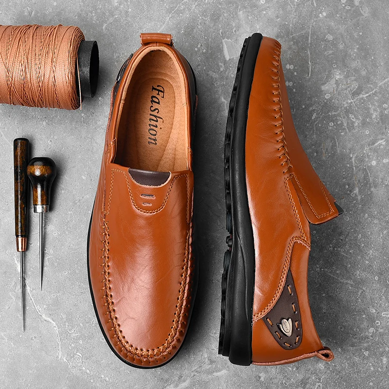 Handmade Shoes Genuine Leather Casual Shoes For Men Flat Platform Walking Shoes Outdoor Footwear Loafers Breathable Sneakers