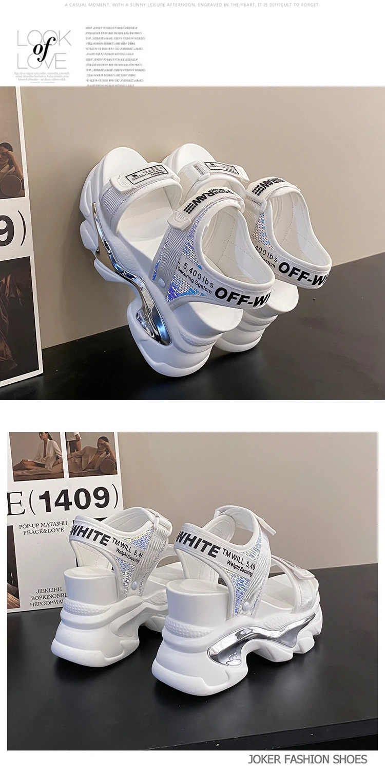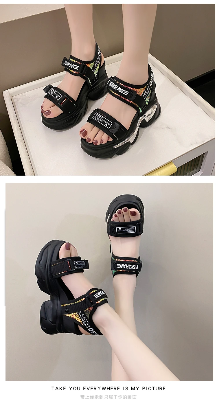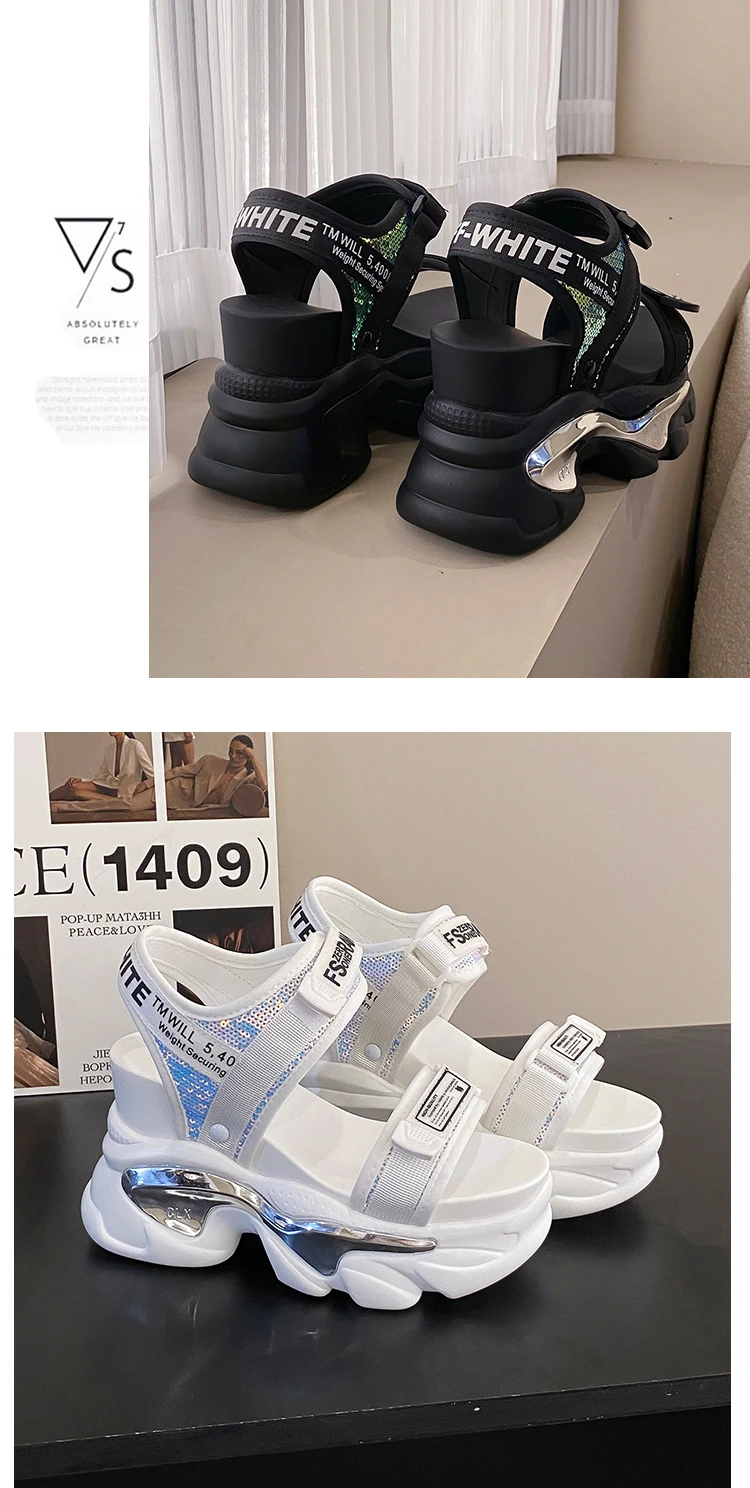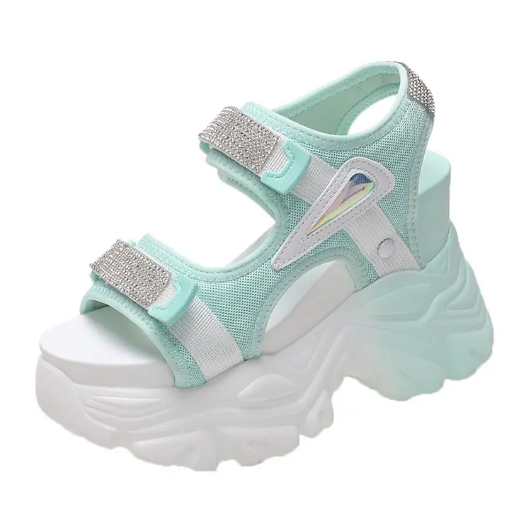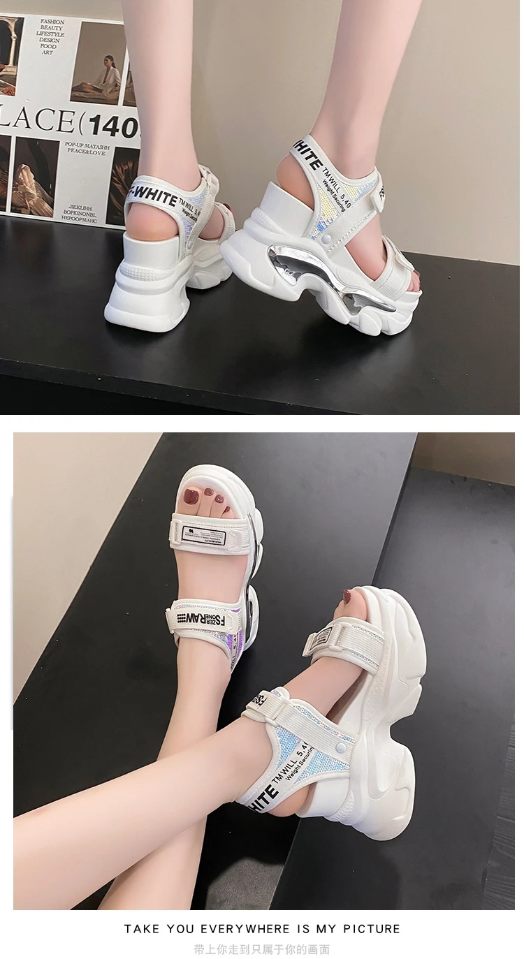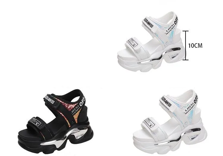 High Platform Sandals Women Bling Wedges High Heels New Summer Buckle Crystal Chunky Sandalias Beach Slippers Zapatos Mujer 10CM