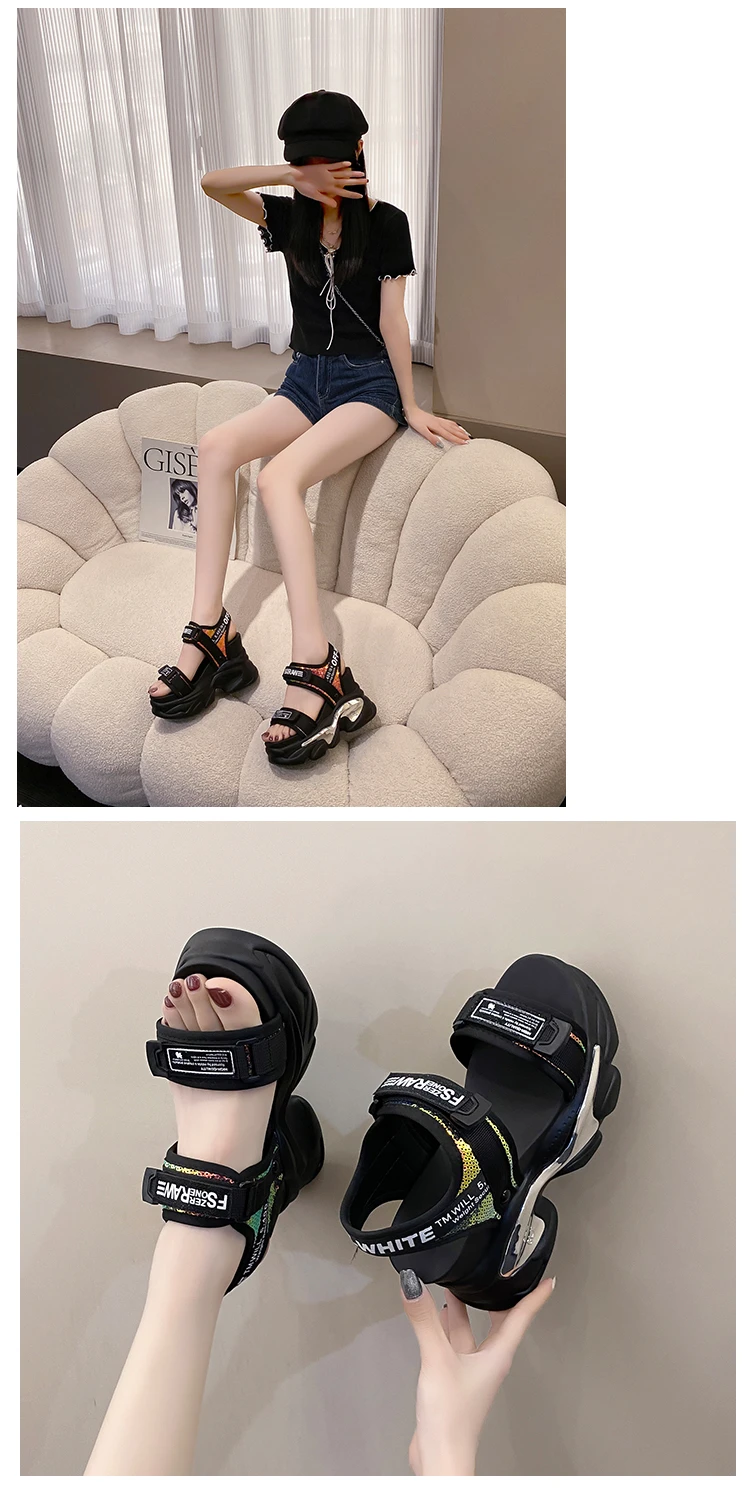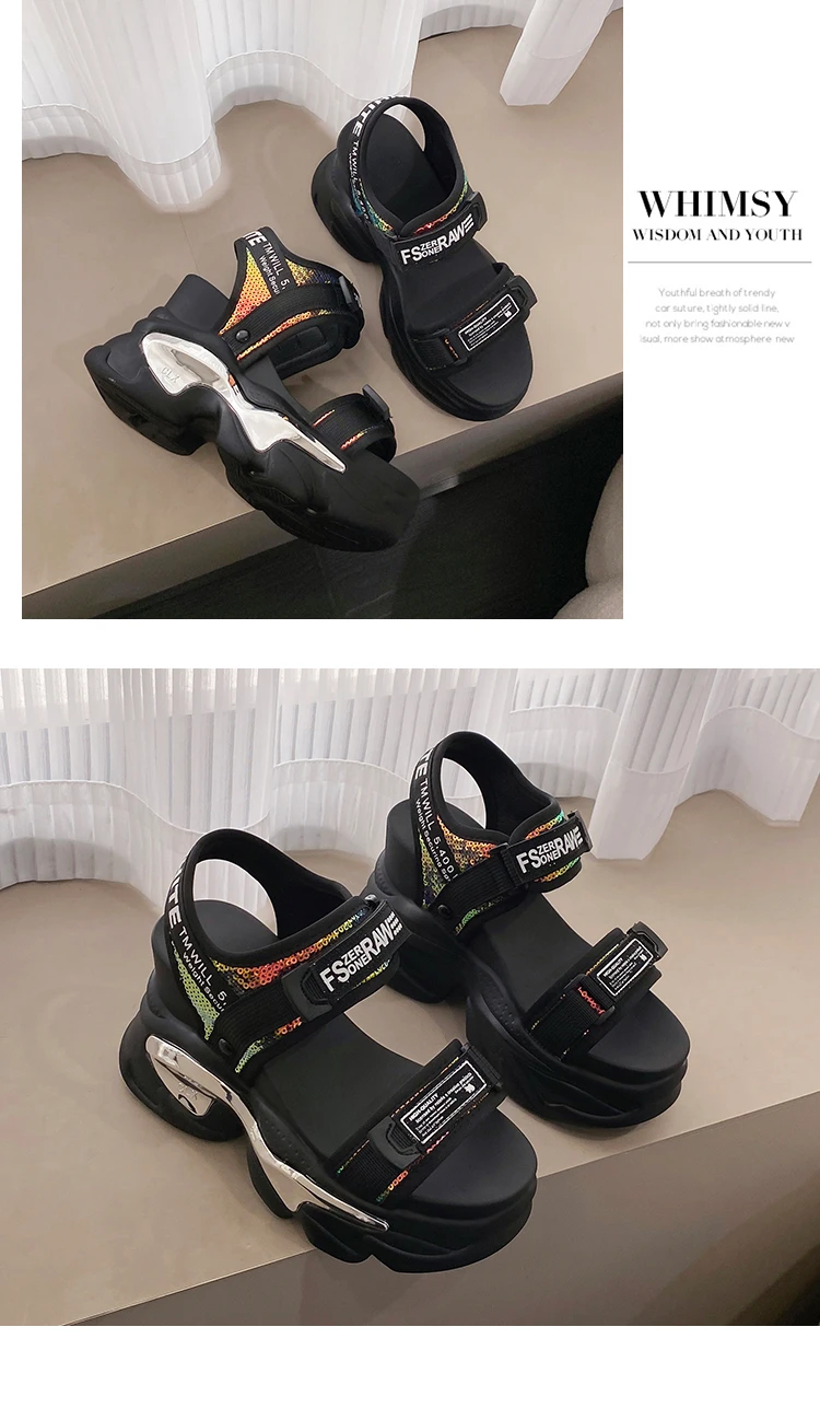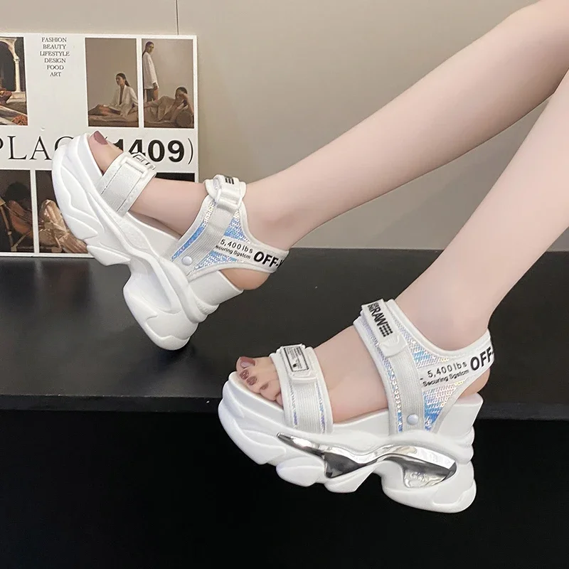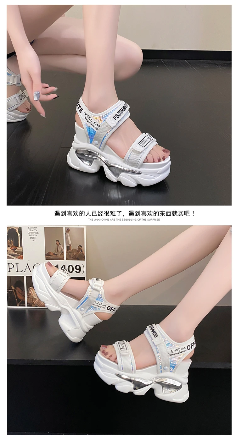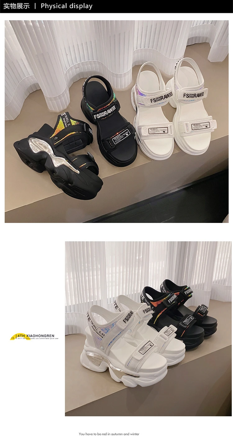 High Platform Sandals Women Bling Wedges High Heels New Summer Buckle Crystal Chunky Sandalias Beach Slippers Zapatos Mujer 10CM