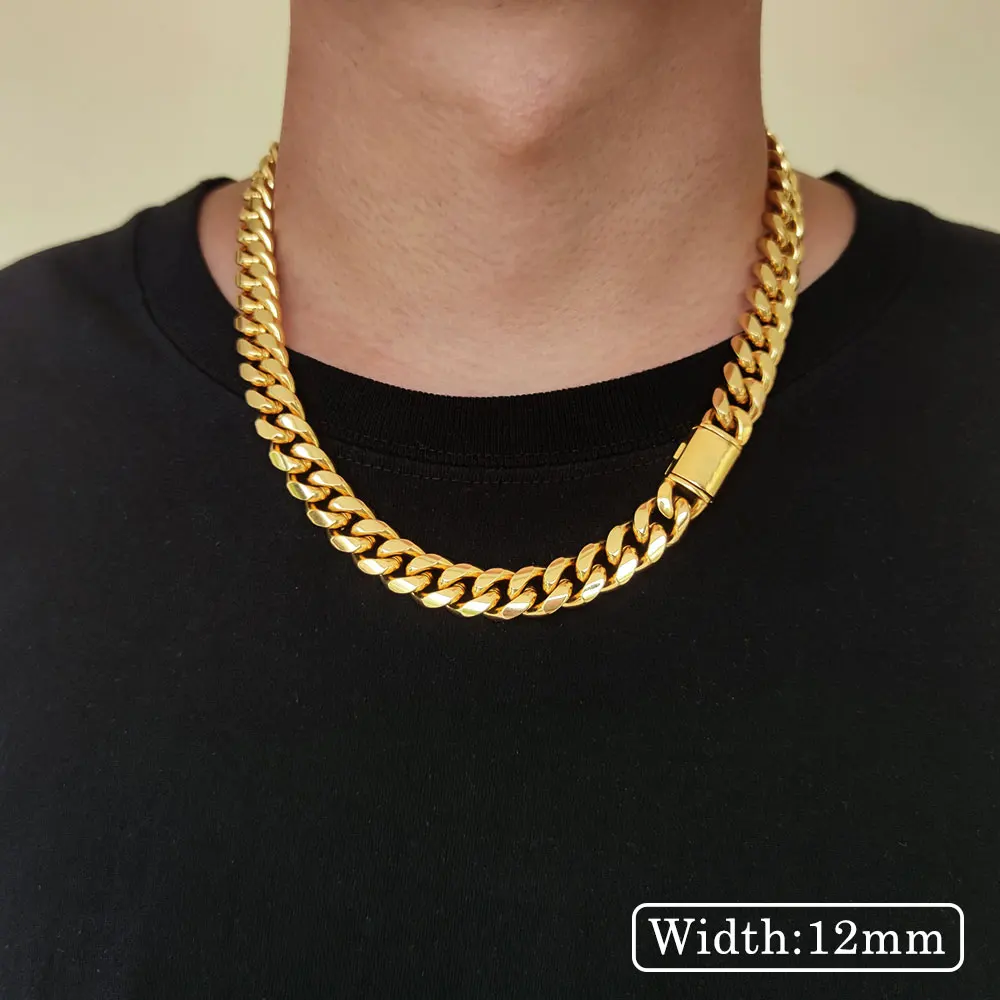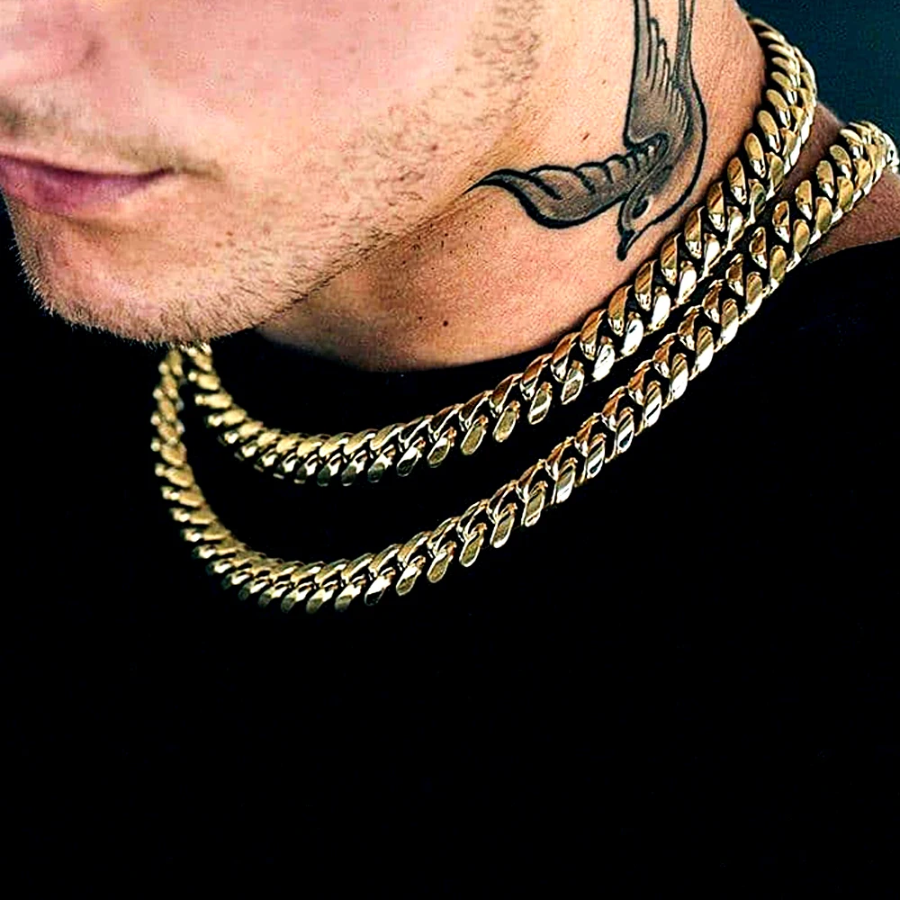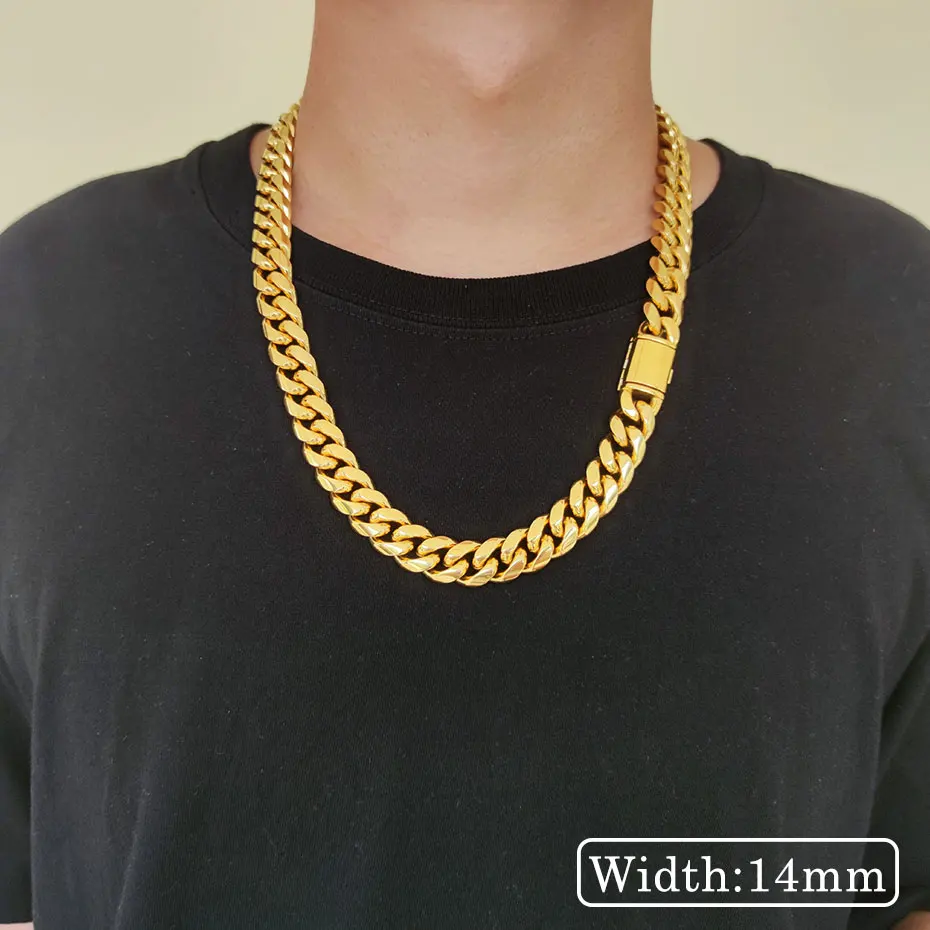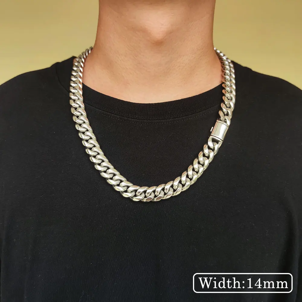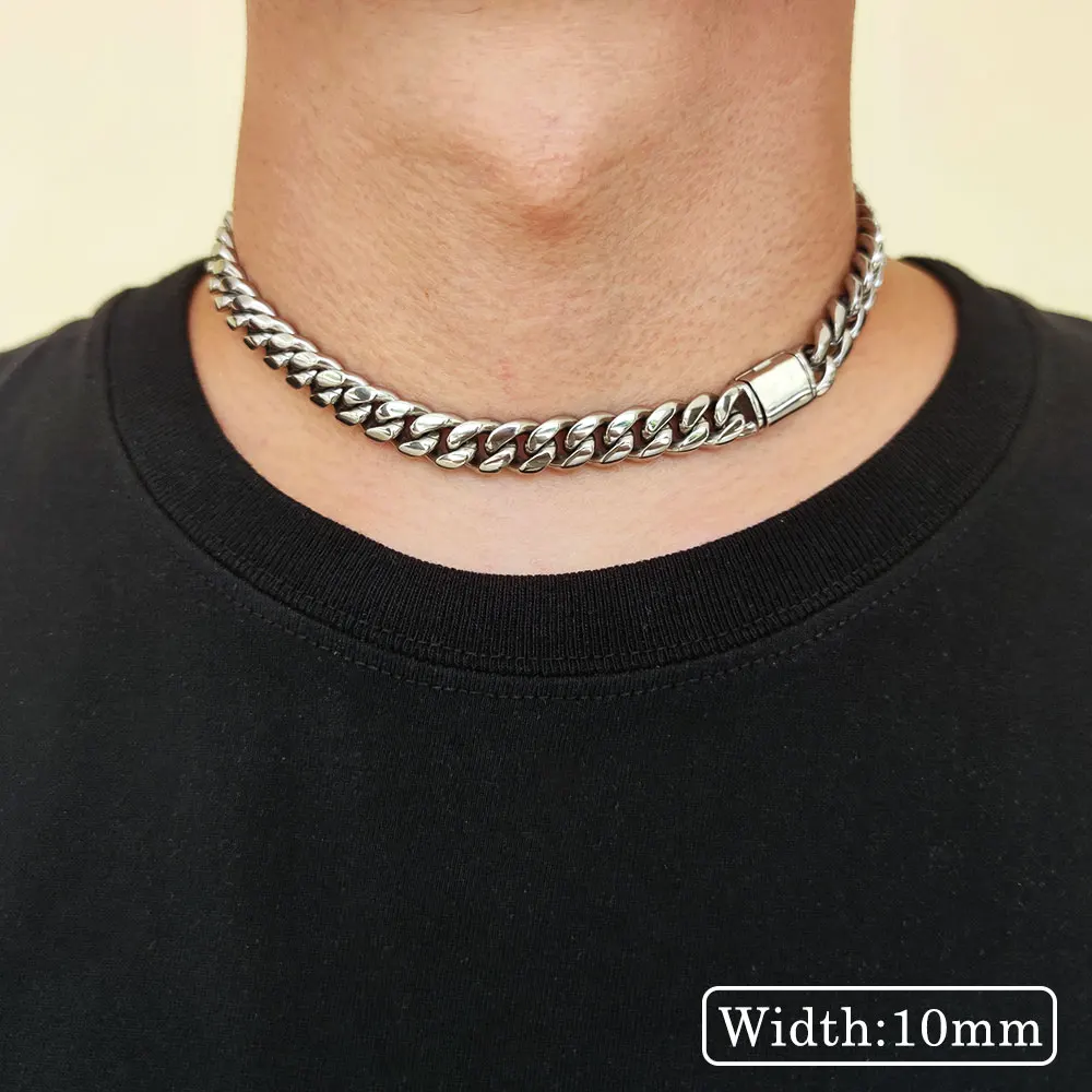 Hip Hop Jewelry 8mm/10mm/12mm/14mm Men’s Necklaces Chain Cool Cuban Link Chain Gift for Men Boys and Girls