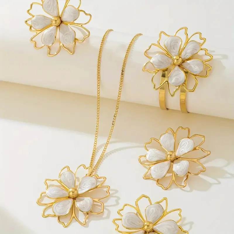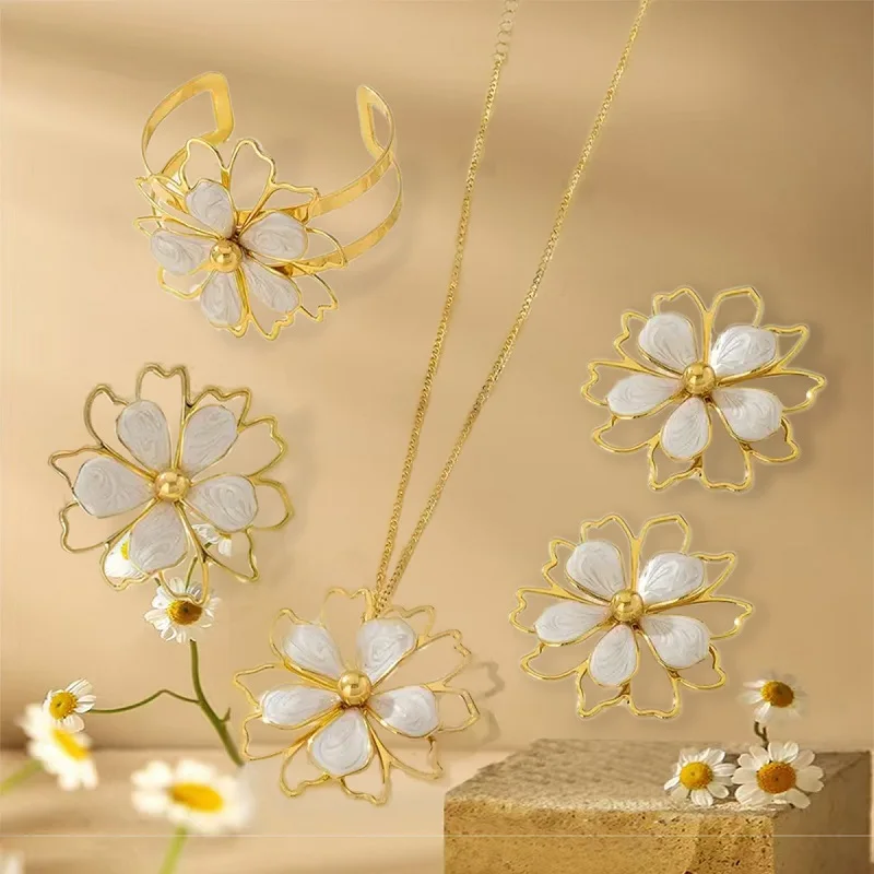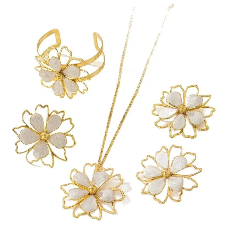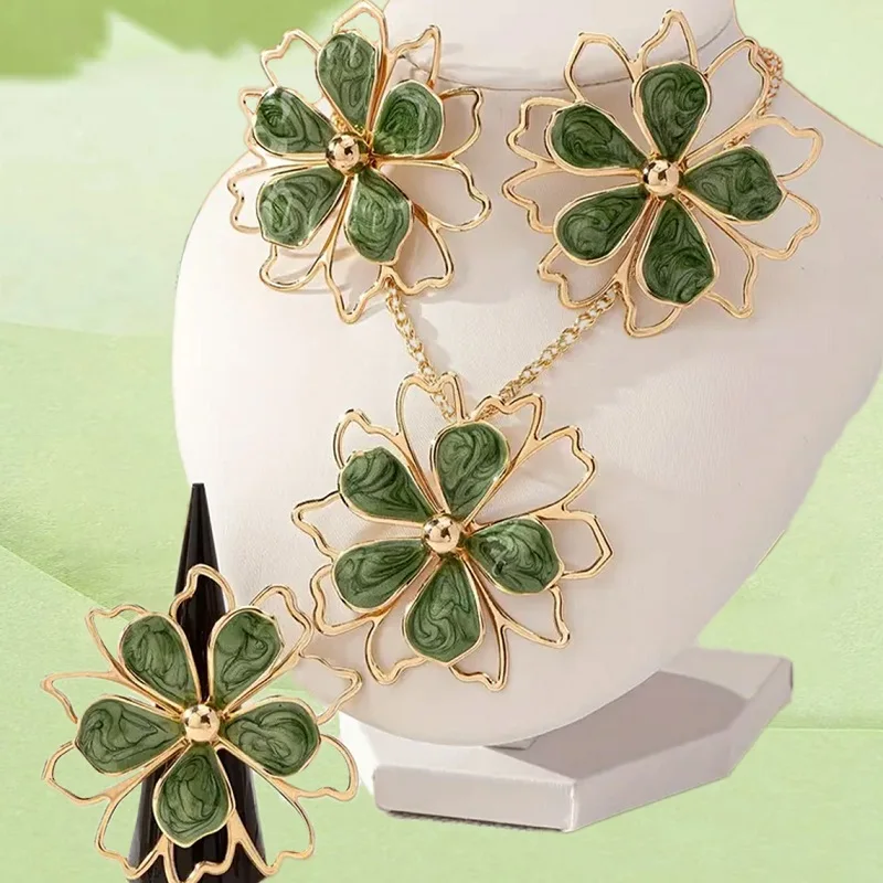Hollow White Green Flower Necklace Pendant Chain Women Girls Gifts Fashion Jewelry Hot Sale Party Gift 2025 New Style