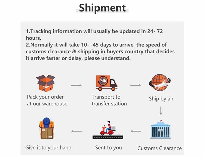 • If you did not receive the product within the guaranteed time( 45 days not including 2-5 day processing) you can request a refund or a reshipment.