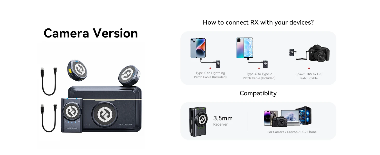 LARK M2 is equipped with a superior high-gain LDS antenna that eliminates interference caused by the human body, providing a stable and uninterrupted audio transmission of up to 1000ft/300m LOS range. With its UAC function, you can connect the RX to your computer directly, eliminating the need for an external sound card.