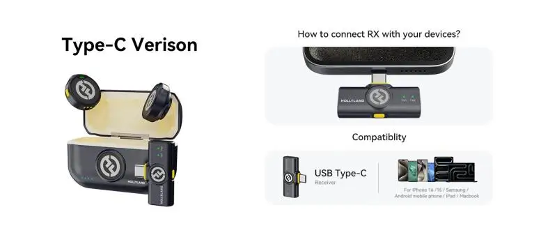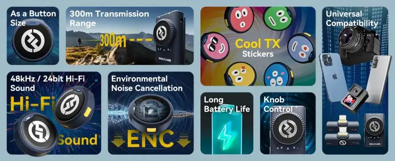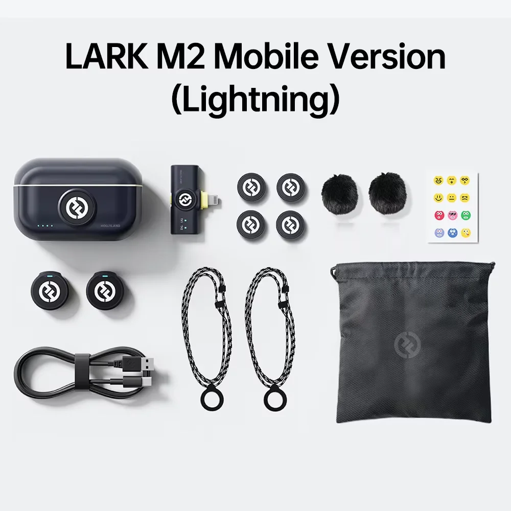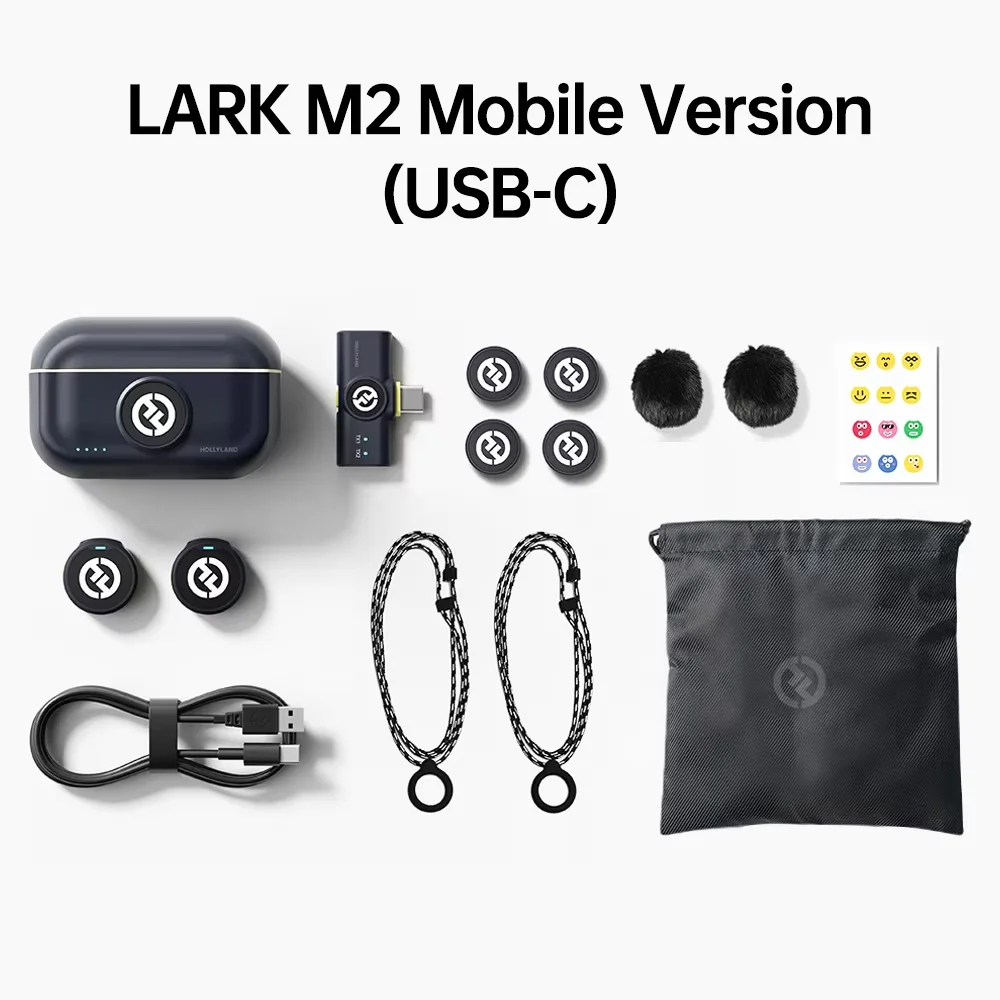 Hollyland Lark M2 Wireless Lavalier Microphone Ser for Photography Vlog iPhone Camera 300m Range Noise Cancellation 30H Battery