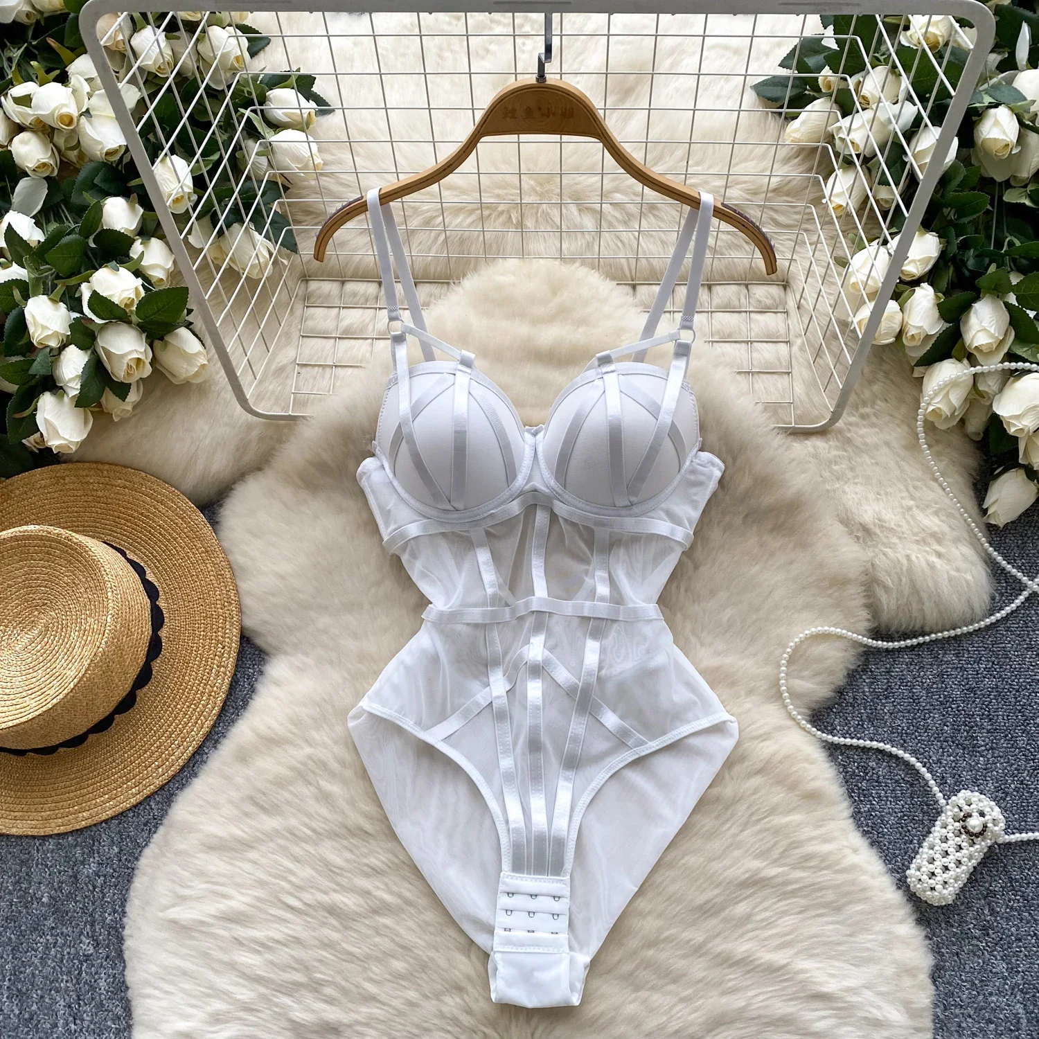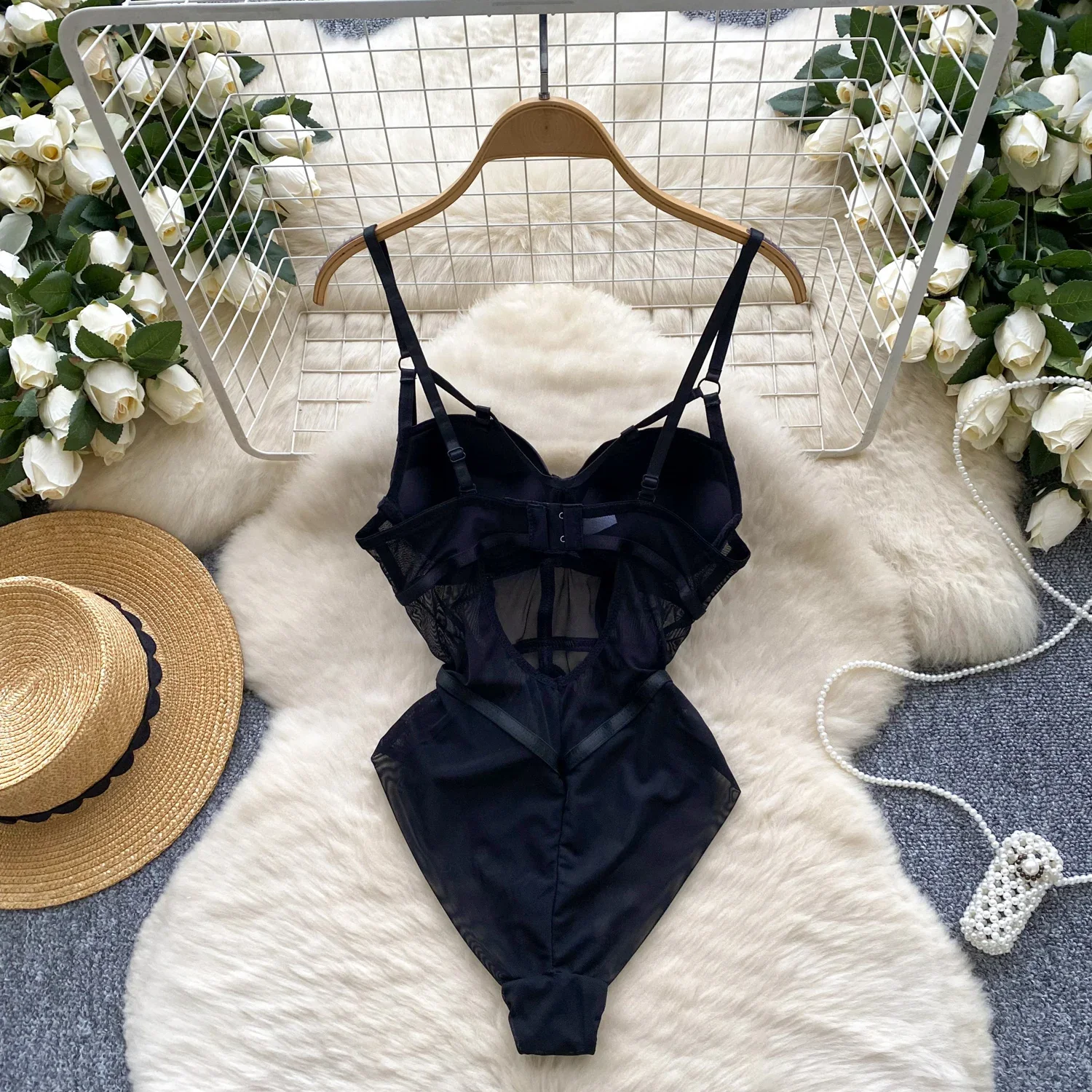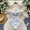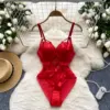 Hotsweet mesh see through Vintage Bodysuits Jumpsuits Slim Top Rompers Summer Beach Sexy Clothing