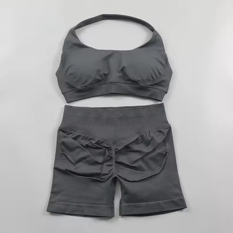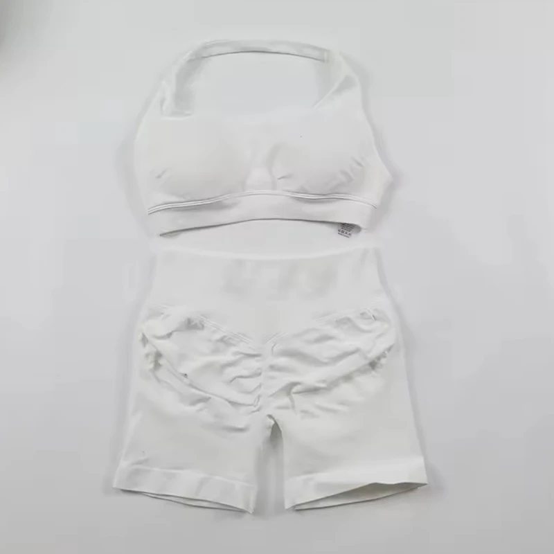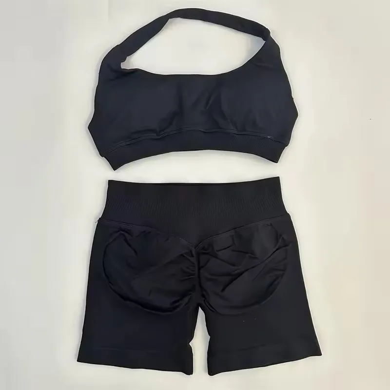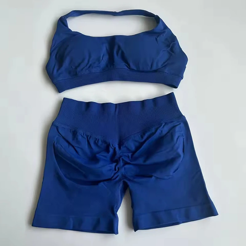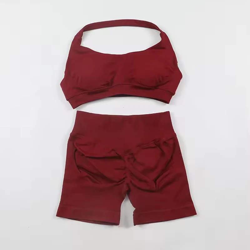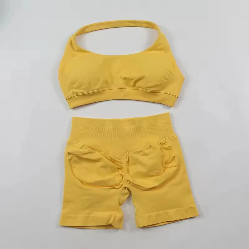 Impact Shorts Set 2 Pieces Seamless Yoga Set Workout Tracksuit Women Halter Sport Bra And Low Waist Scrunch Bum Gym Shorts Suits