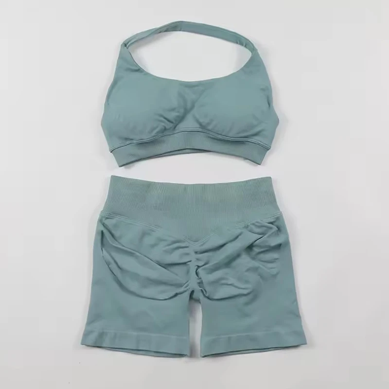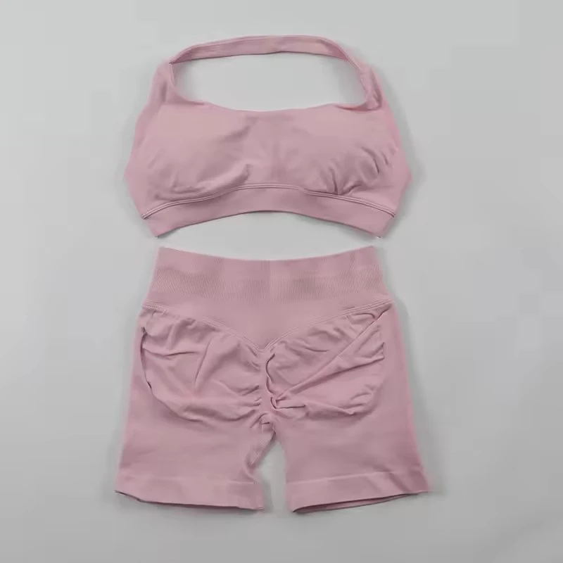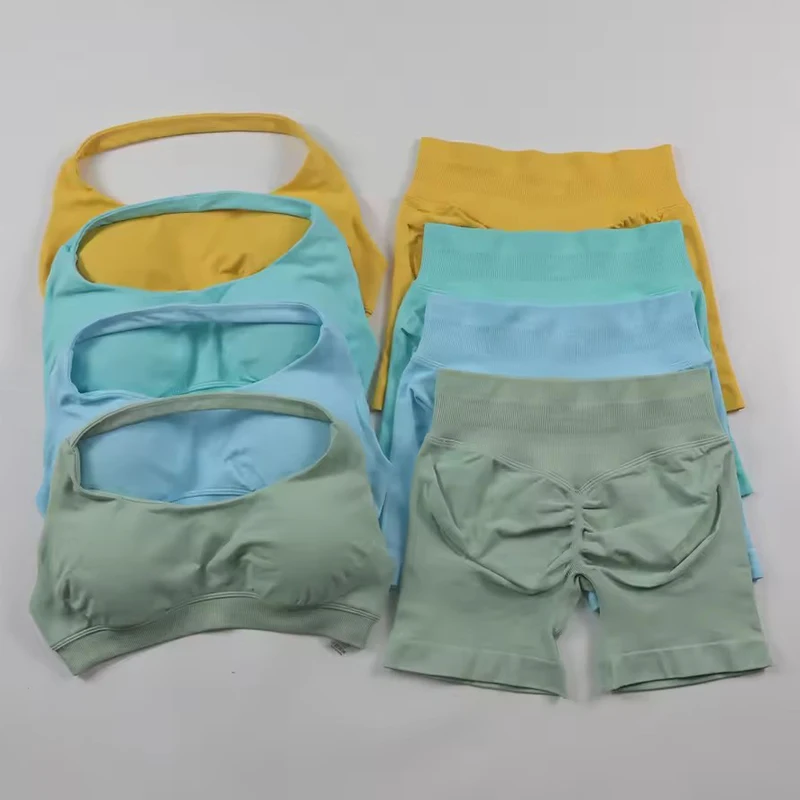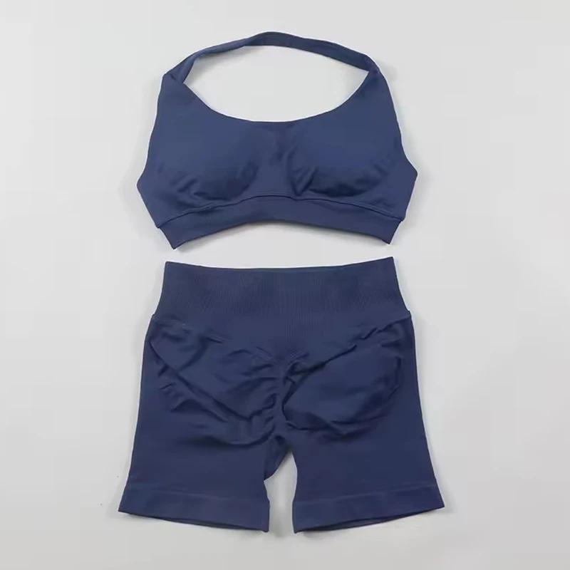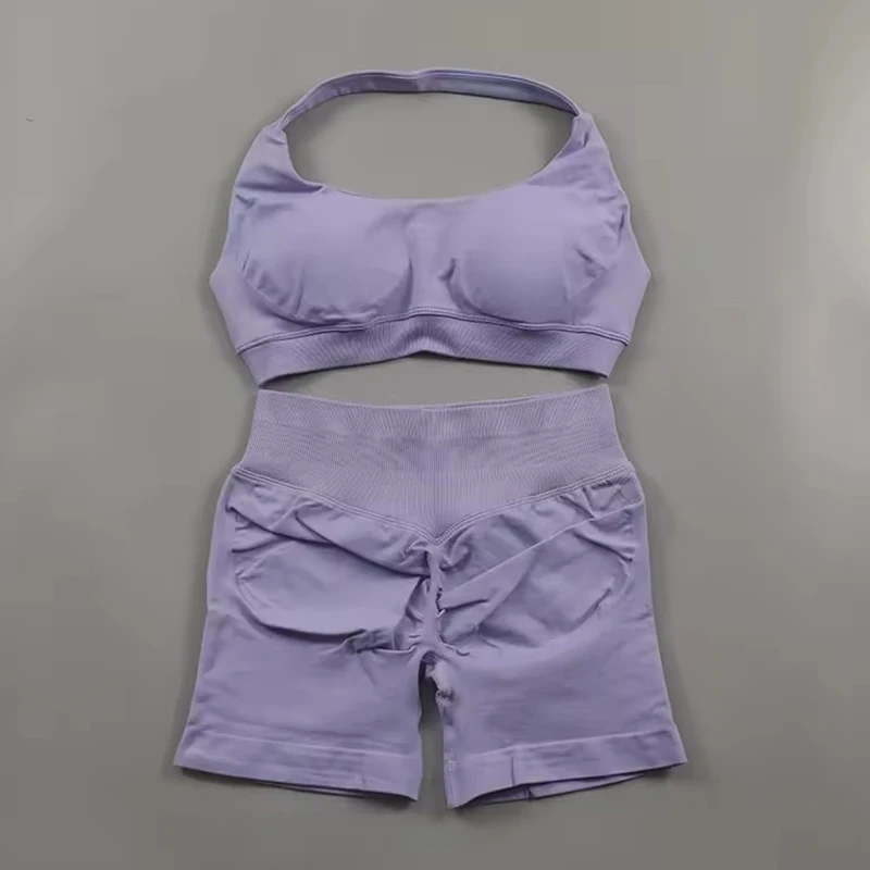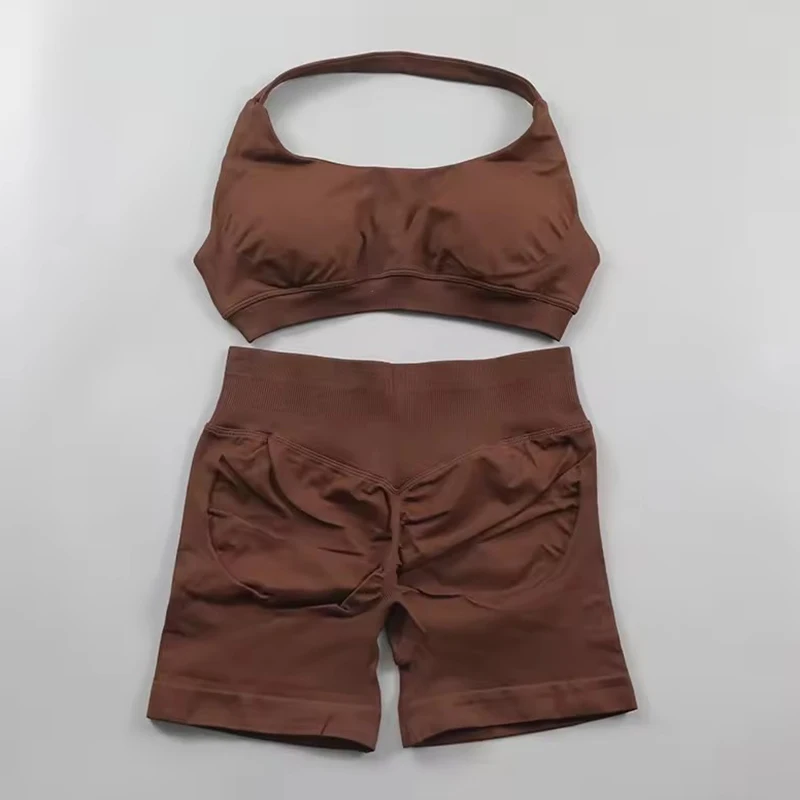 Impact Shorts Set 2 Pieces Seamless Yoga Set Workout Tracksuit Women Halter Sport Bra And Low Waist Scrunch Bum Gym Shorts Suits