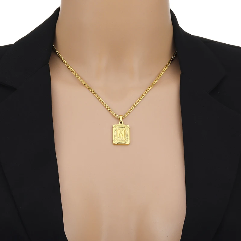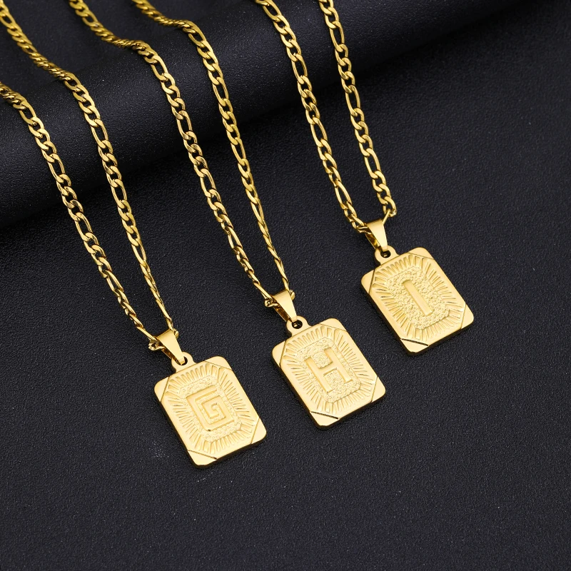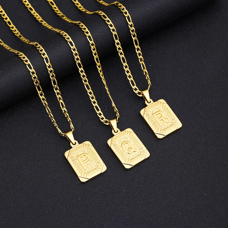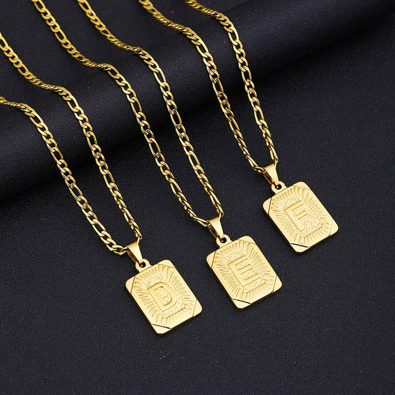 Initial Letter Pendant Necklace Stainless Steel Golden Cuban Chain A-Z Alphabet Name Jewelry For Men Women Gift