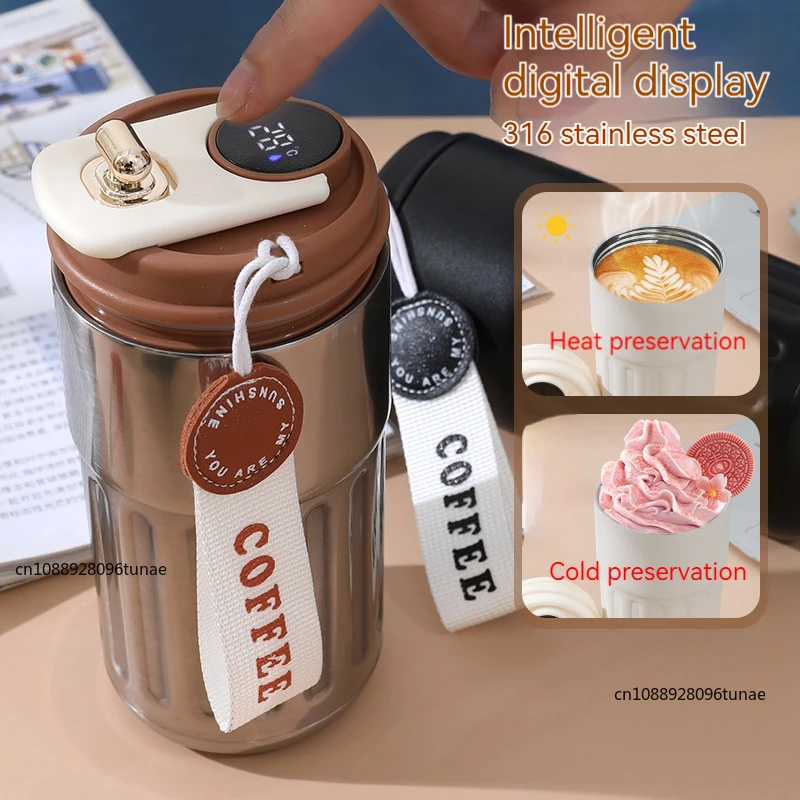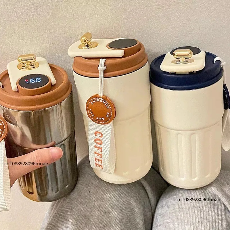 1x intelligent temperature measurement stainless steel double layer water cup