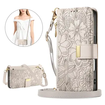 Leather Zipper Crossbody Flip Wallet Card Slot Phone Case for IPhone 16E 16 Plus 15 14 13 12 17 Pro Max Wrist Strap Funda Cover
