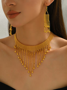 Arabian bride luxurious vintage long tassel necklace and earrings two-piece set wedding bride jewelry accessory set