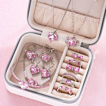 14 Pcs/Set Pink Crystal Jewelry Set for Women Y2k Kpop Cute Girl Heart Pendant Necklace Earring Bracelet Ring Trendy Jewelry New