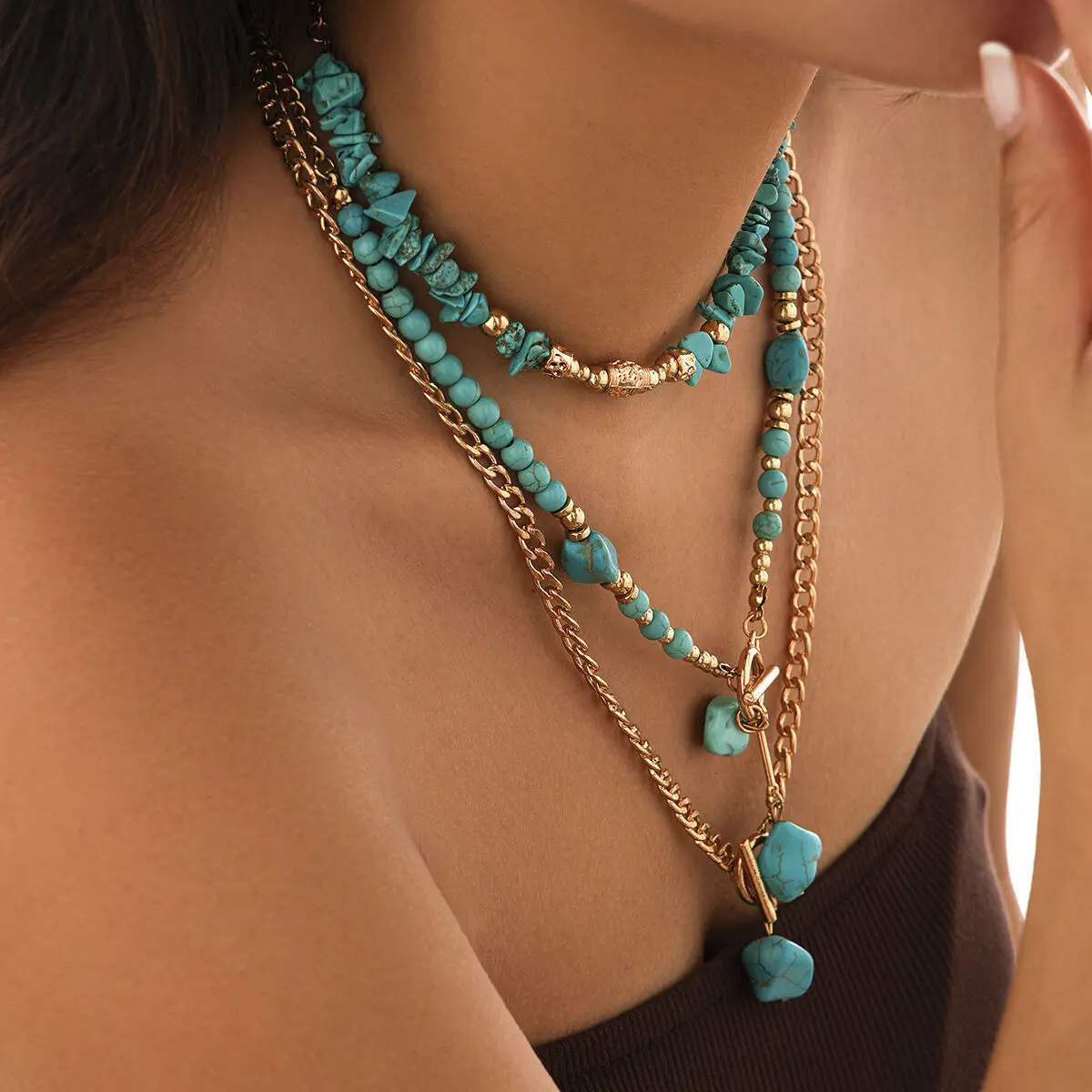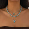KunJoe 3Pcs Vintage Blue Natural Stone Beads Choker Necklaces for Women Bohemia Geometry Pendant Necklace Trendy Neck Jewelry