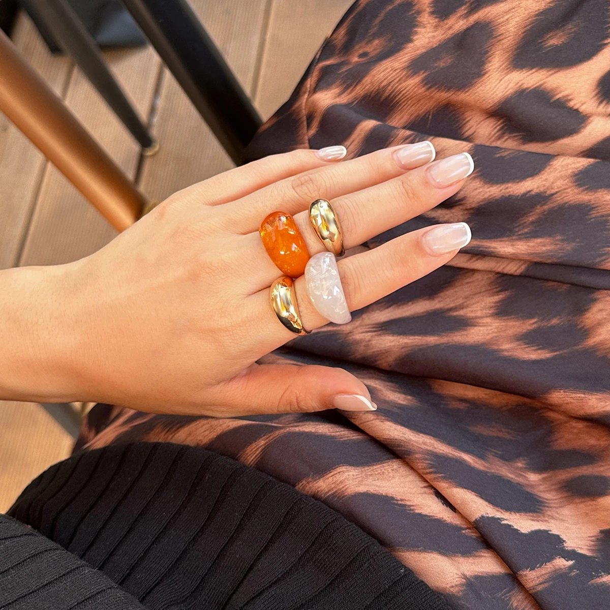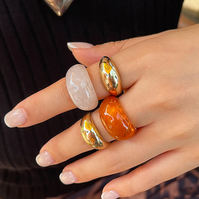 KunJoe 4Pcs/Set Vintage Smooth Water Drop Open Rings for Women Bohemia Colorful Resin Acrylic Round Joint Rings Design Jewelry