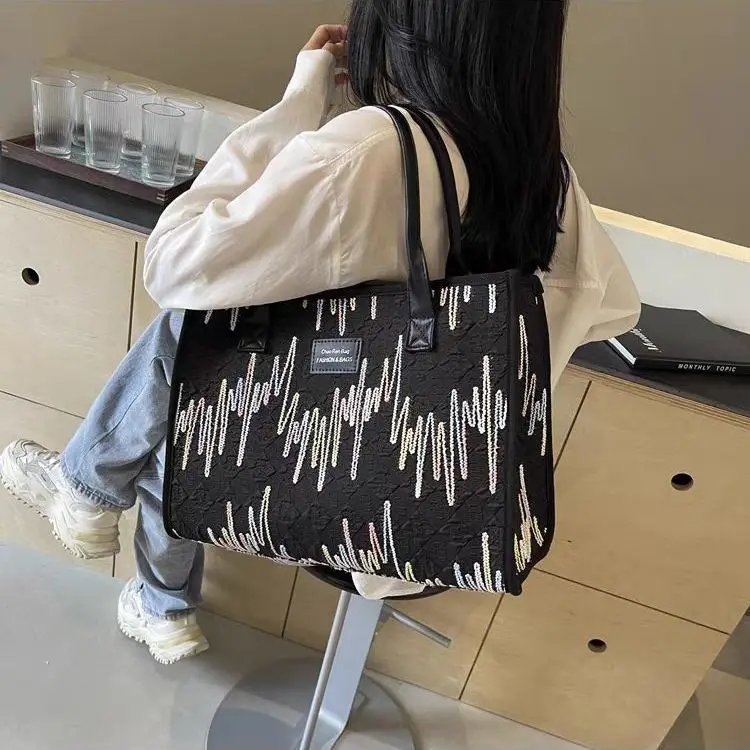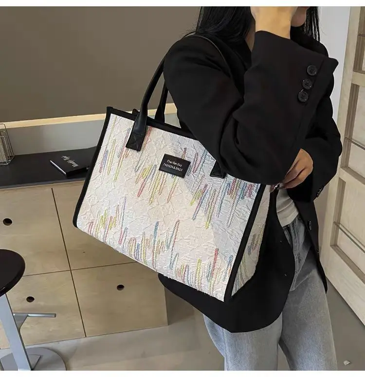 Large Capacity Canvas Bag Versatile Bag Women’s Fashion Portable Shoulder Commuter Tote Bag Ethnic Style
